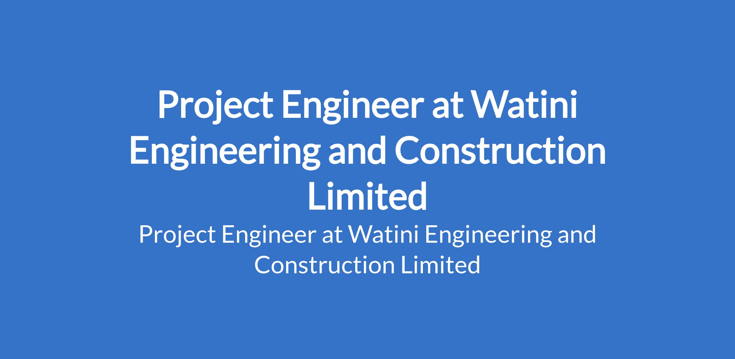 Watini Engineering and Construction Limited is recruiting to fill the position of: Project Engineer. The position is located in VGC - Ajah, Lagos State. Interested candidates should possess an HND / B.Sc Degree in Engineering with a minimum 1 year experience.