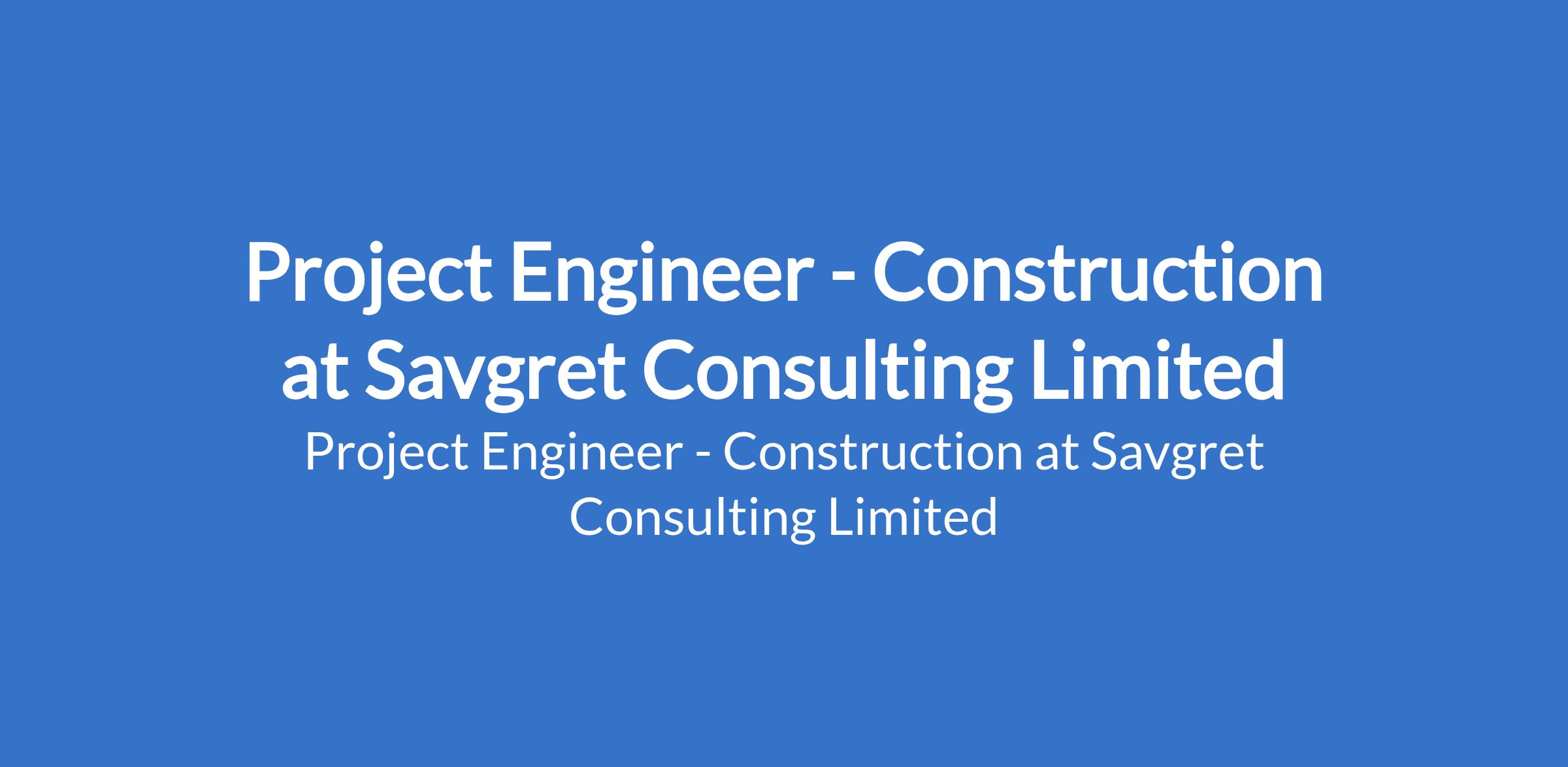 Savgret Consulting Limited is recruiting to fill the position of: Project Engineer - Construction. The position is located in Lagos State. Interested candidates should possess a Bachelor's Degree in Civil Engineering, Construction Management, or a related field with proven industry experience and familiarity with construction codes and standards.