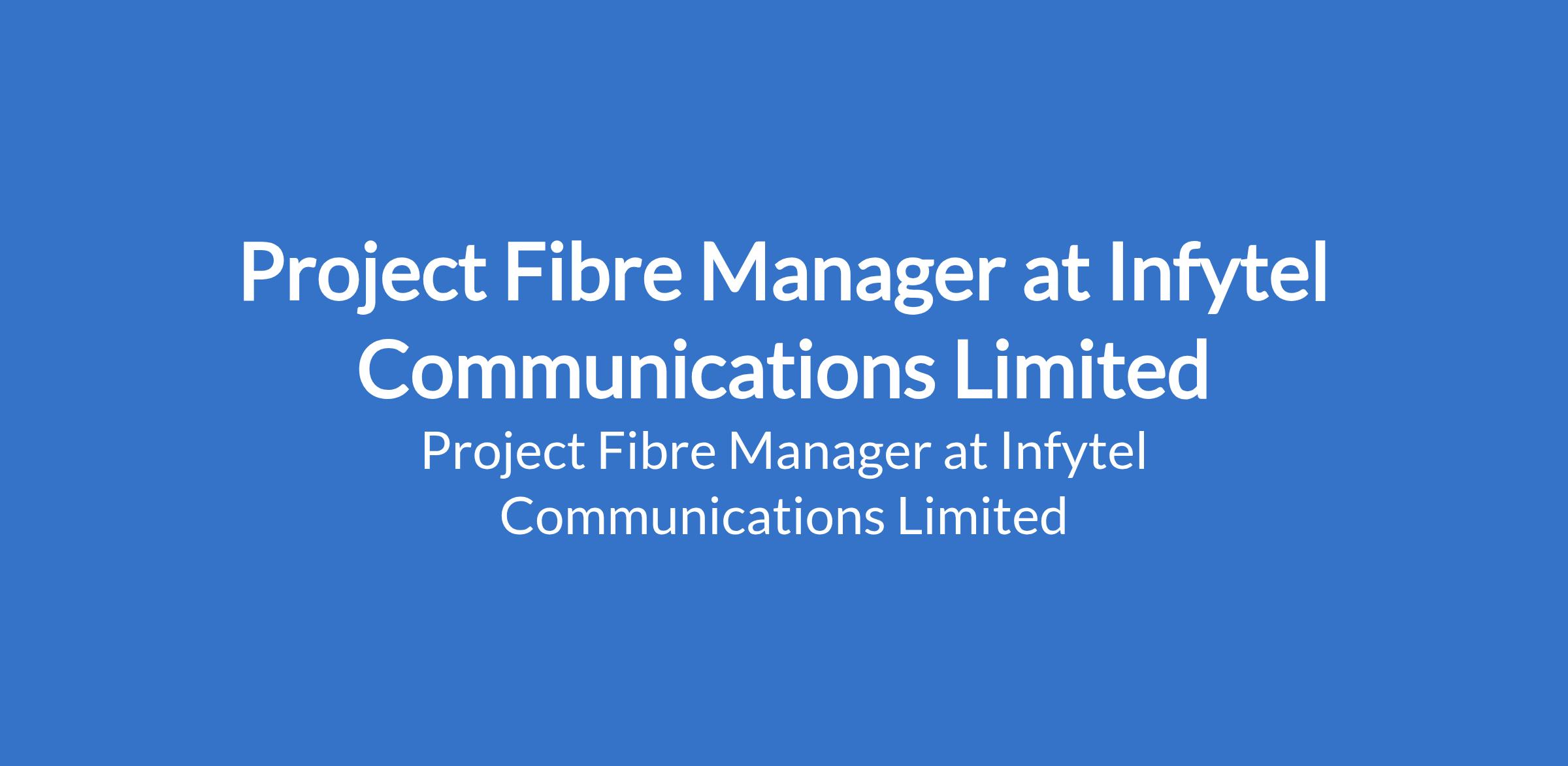 Infytel Communications Limited is recruiting to fill the position of: Project Fibre Manager. The position is located in Lagos State. Interested candidates should possess an HND/BSc in Engineering, Telecoms, or related field with 4+ years experience in fibre network deployment.