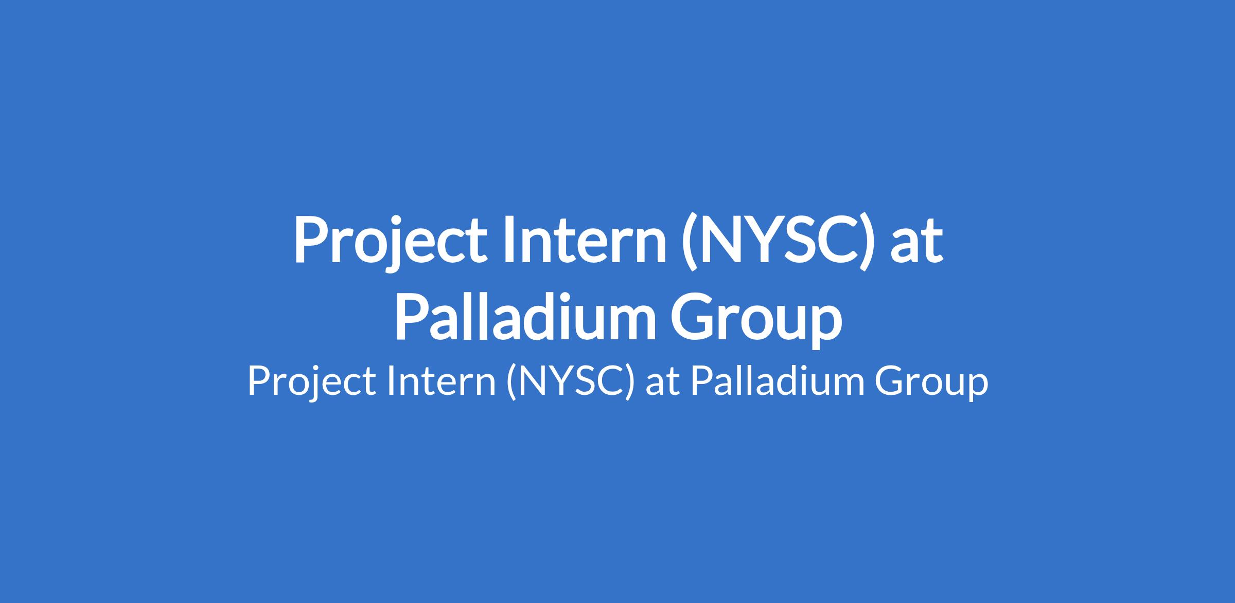 Palladium Group is recruiting to fill the position of: Project Intern (NYSC). The position is located in Abuja. This internship provides a unique opportunity to gain hands-on experience in the day-to-day programs management at Palladium Data.FI. Interested candidates should possess a Bachelors Degree in Social Sciences, Statistics or Health Related courses and should be Abuja based 2025 Batch C NYSC members available for an immediate start.