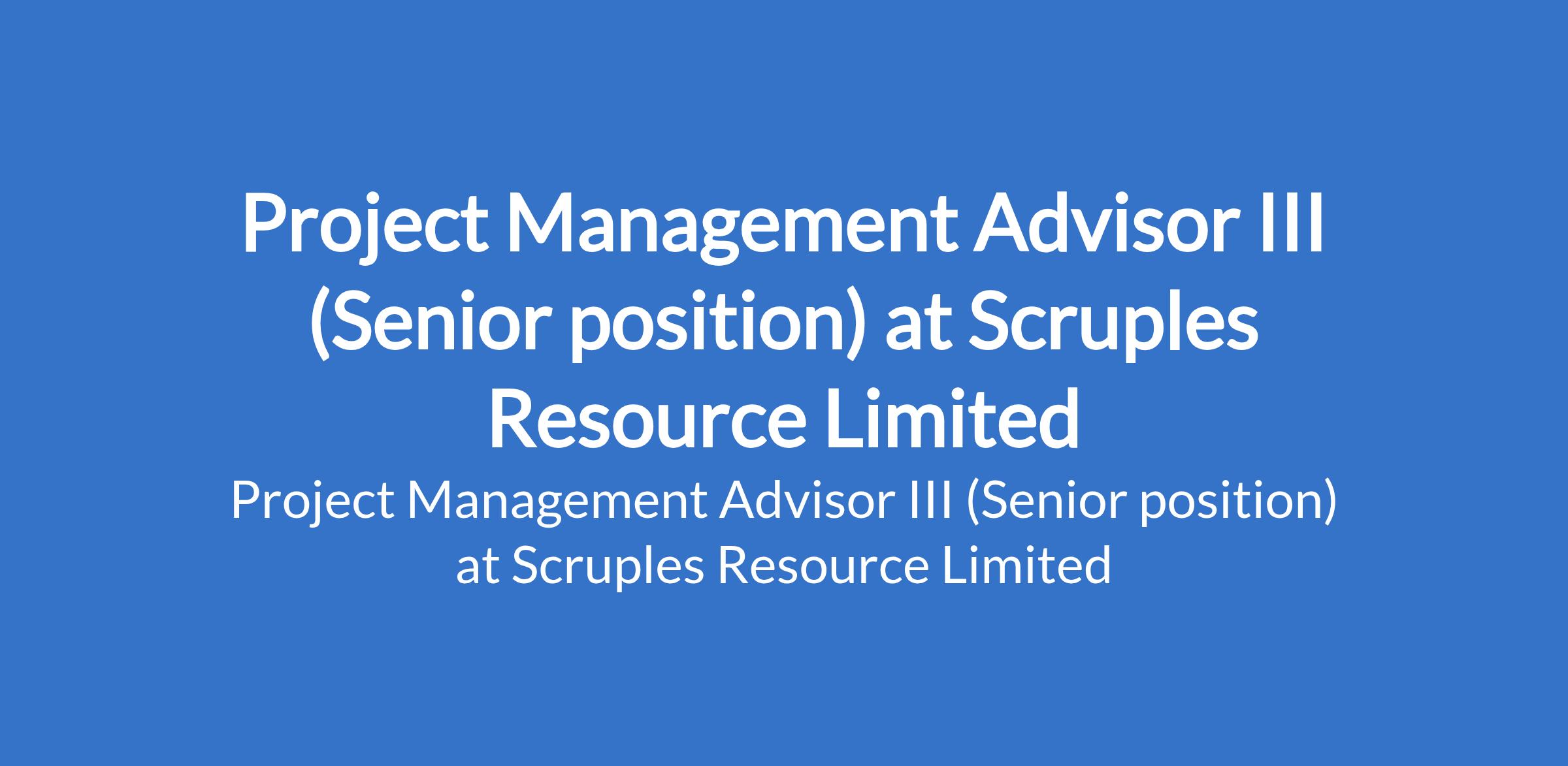 Scruples Resource Limited is recruiting to fill the position of: Project Management Advisor III (Senior position). The position is located in Lagos State. Interested candidates should possess a BSc / MSc in Engineering with experience in major capital projects for the oil and gas industry.