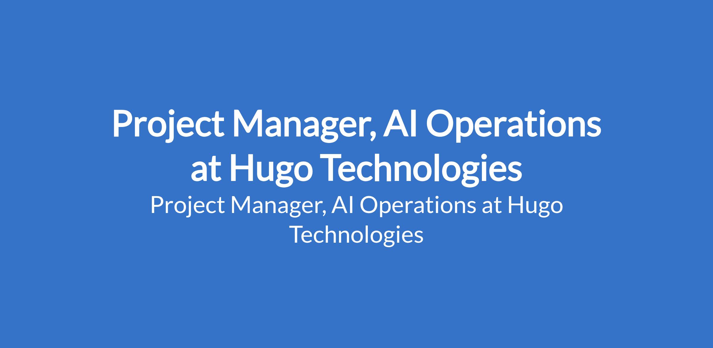 Hugo Technologies is recruiting to fill the position of: Project Manager, AI Operations. Interested candidates should be analytically strong project managers with a STEM Bachelors or Masters Degreeand 3+ years experience at leading AI data annotation and evaluation firms (e.g., Scale AI, Mercor, Turing, Appen, Innodata).