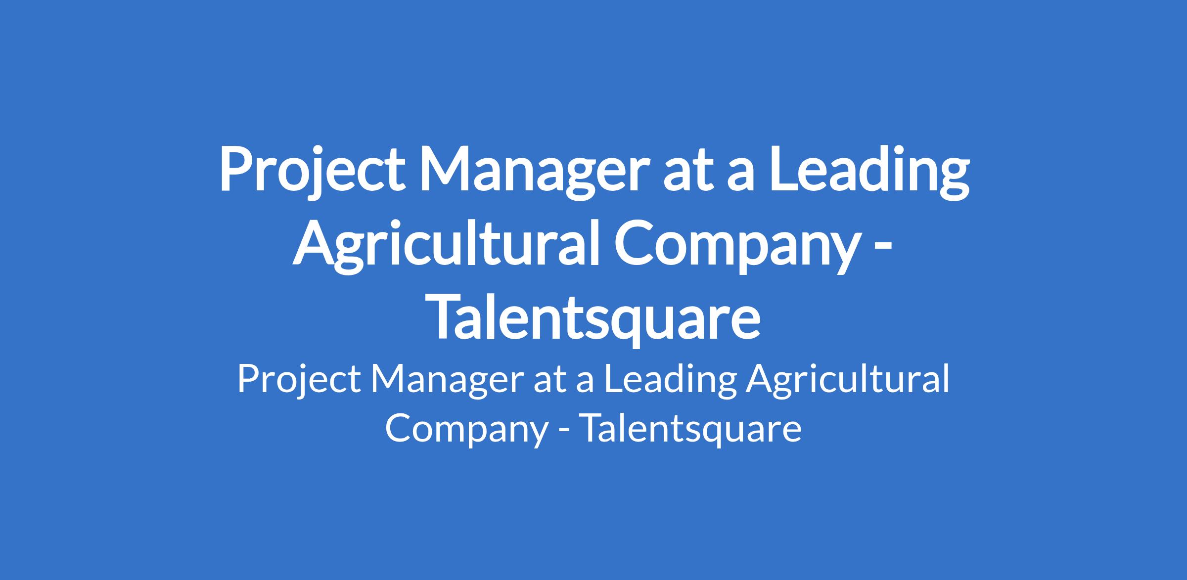 TalentSquare Our client, a leading agricultural company is recruiting to fill the position of: Project Manager. The position is located in Lagos State. Salary: N700,000 / month. Interested candidates should possess a Bachelors Degree in Business, Engineering, Operations, or a related field.