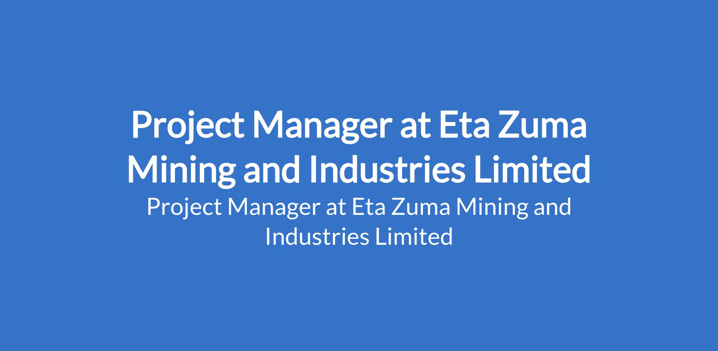 Eta Zuma Mining and Industries Limited is recruiting to fill the position of: Project Manager. The position is located in Abuja (FCT). Interested candidates should possess relevant qualifications with proven experience managing complex, multi-functional projects.
