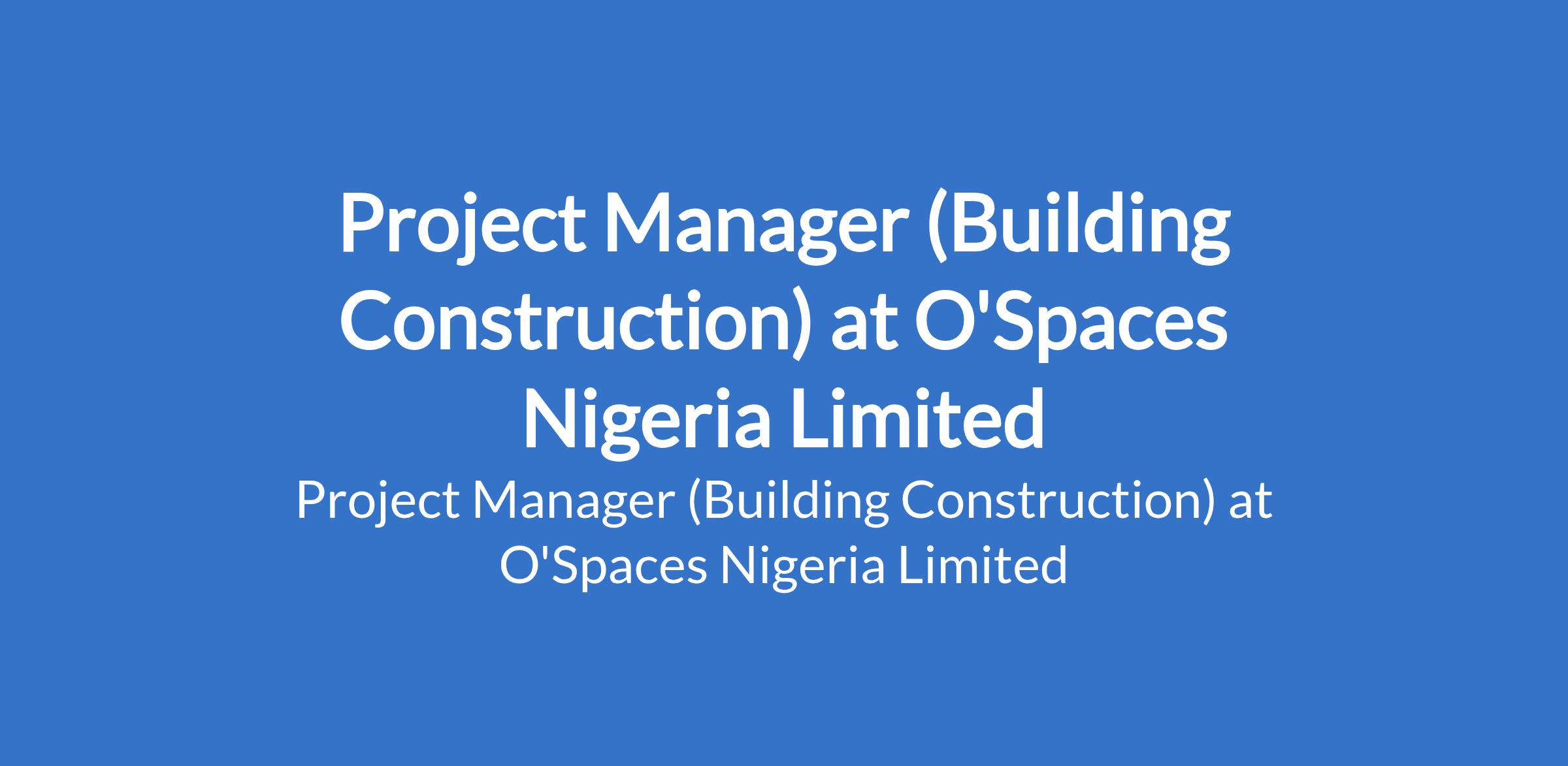 O'Spaces Nigeria Limited is recruiting to fill the position of: Project Manager (Building Construction). The position is located in Onikan, Lagos State. Interested candidates should possess a Bachelor's Degree in Construction Management, Civil Engineering, or related fields with a minimum of 15 years of experience in building construction project management and prior experience of at least 10 years as a Site Manager.