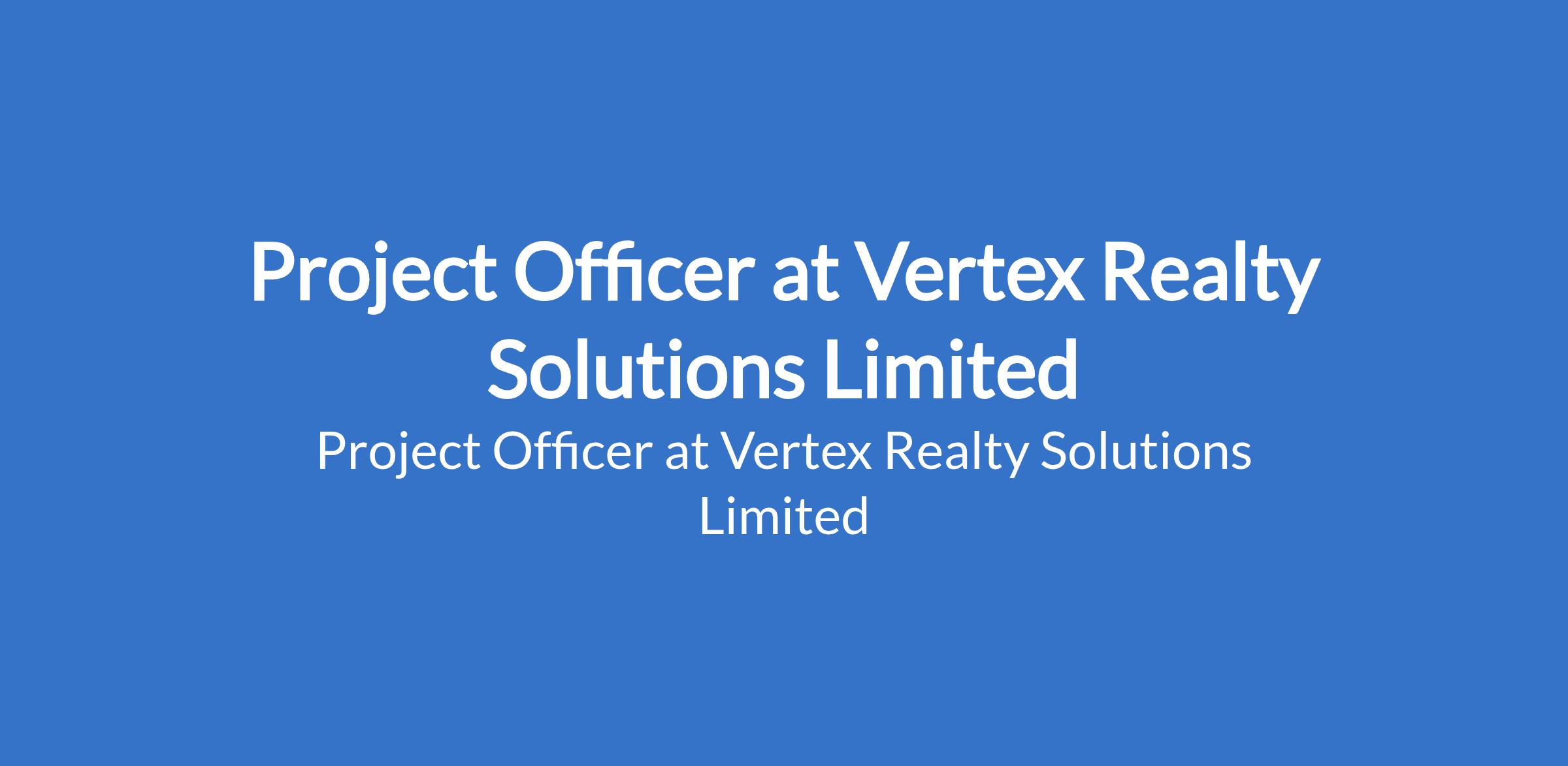 Vertex realty solutions is recruiting to fill the position of: Project Officer. The position is located in Lekki Phase 1, Lagos State. Salary: N200,000 - N400,000 monthly. Interested candidates should possess a Bachelor's Degree in a relevant field (e.g., Business Administration, Management) with proven experience in project management, coordination, or administration.