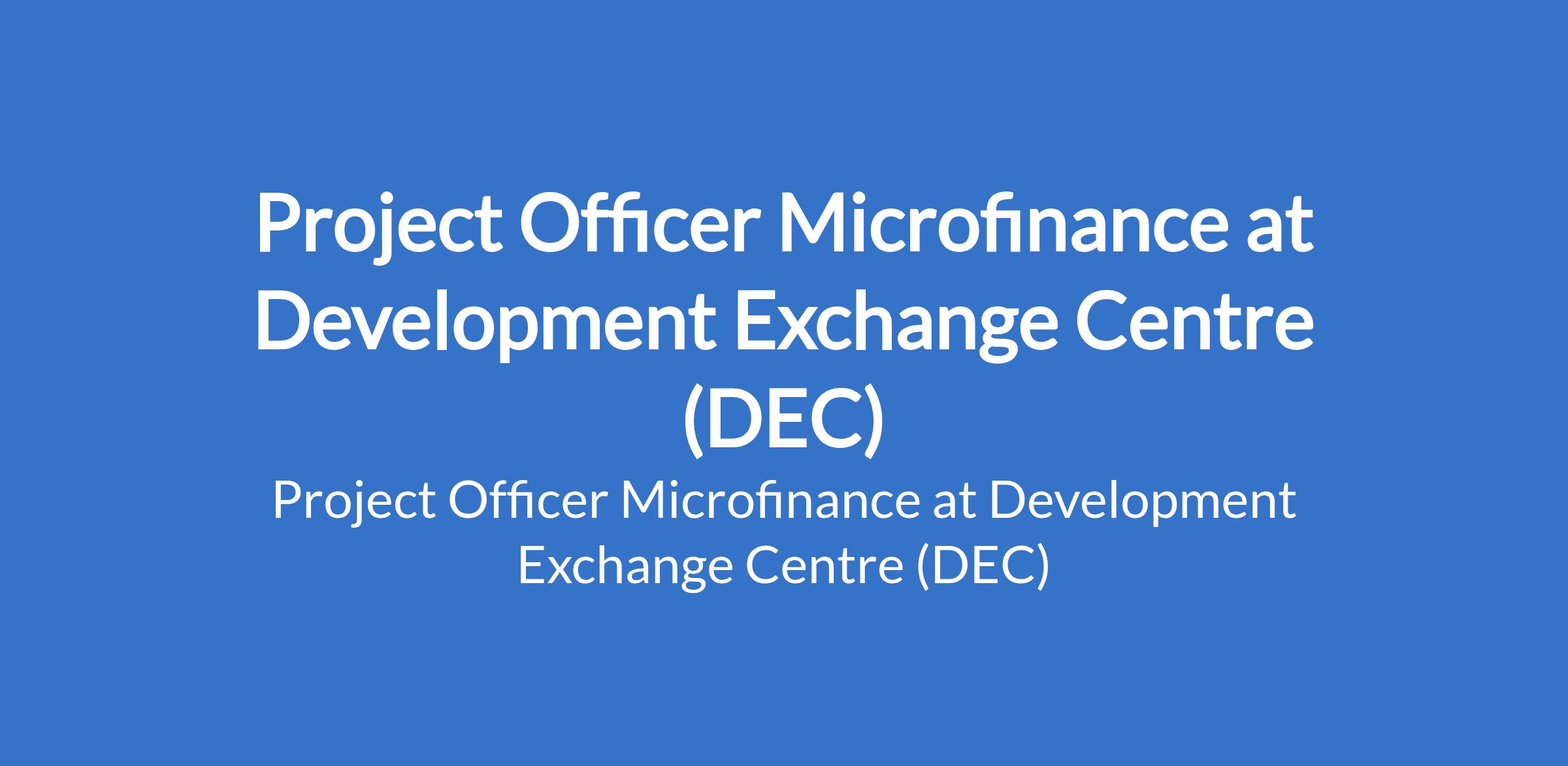 Development Exchange Centre (DEC) is recruiting to fill the position of: Project Officer Microfinance. The position is located in Bauchi State. Interested candidates should possess a minimum of First Degree or HND with 3 to 5 years experience in project management preferably in microfinance, banking, or financial services.