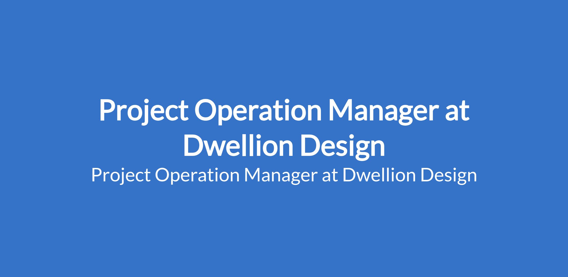 Project Operation Manager at Dwellion Design