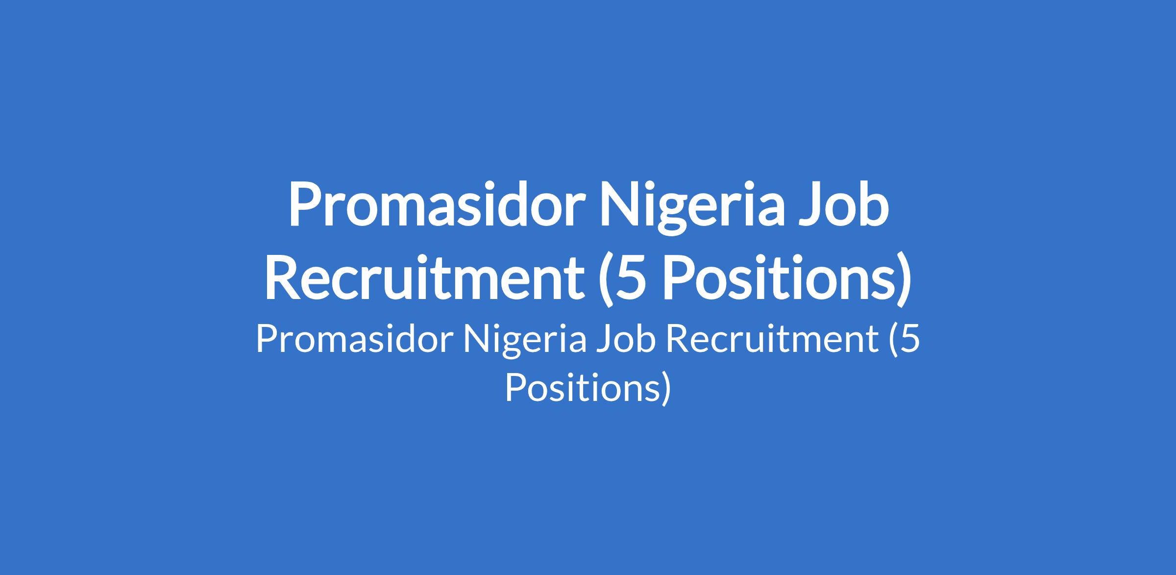 Promasidor Nigeria Job Recruitment (5 Positions)