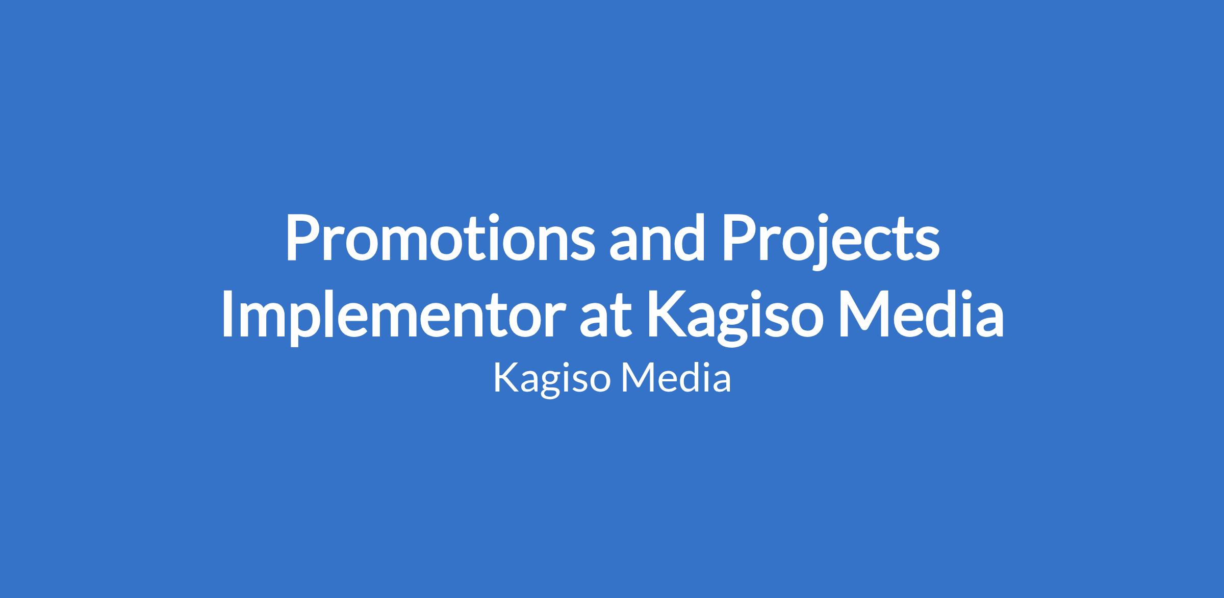 Promotions and Projects Implementor at Kagiso Media