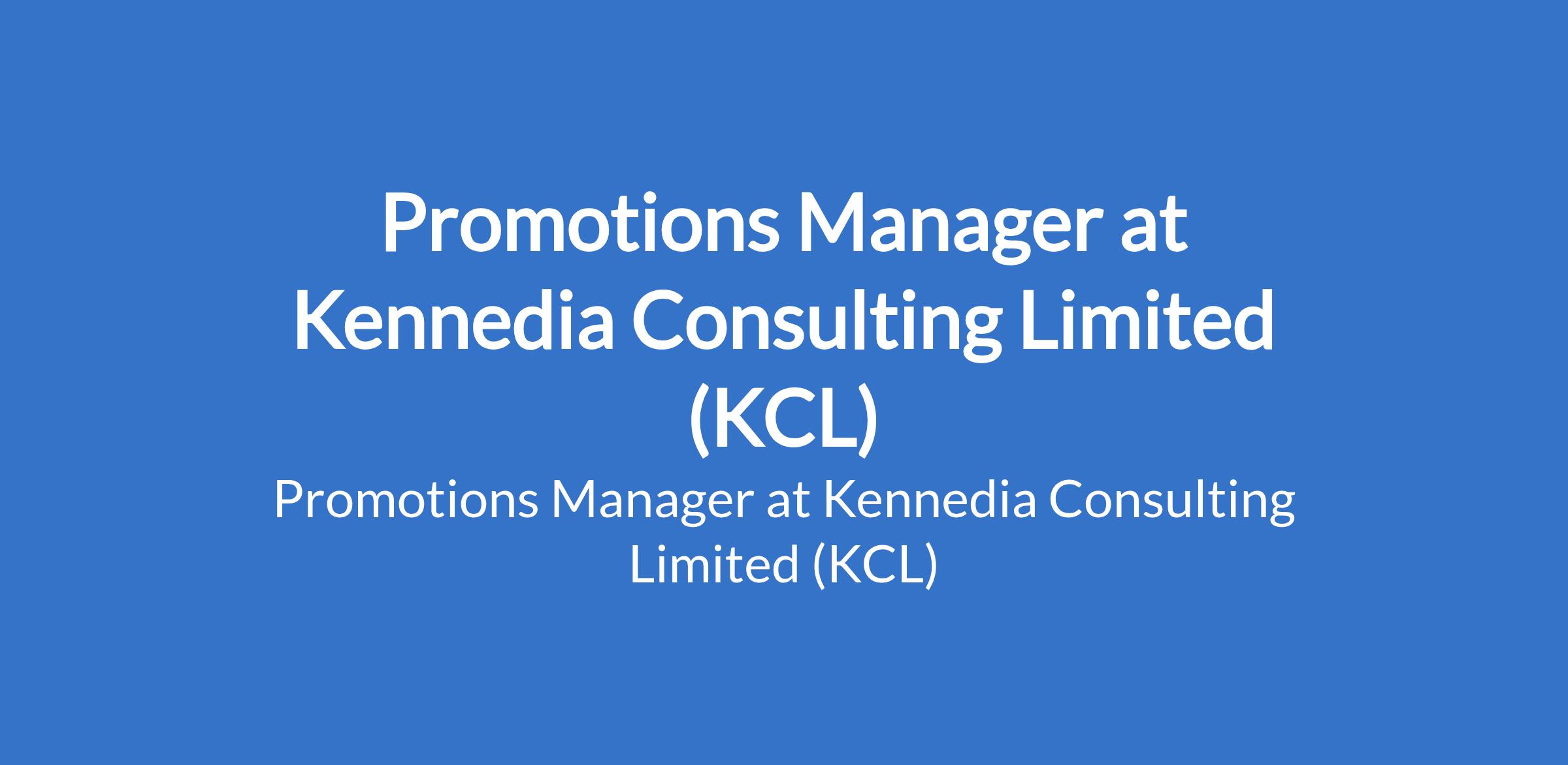 Kennedia Consulting Limited (KCL) is recruiting to fill the position of: Promotions Manager. The position is located in Lagos State. Salary: N300,000 - N600,000 per month. Interested candidates should possess a Bachelors Degree in Marketing or related fields with 47 years experience in promotions or brand activation