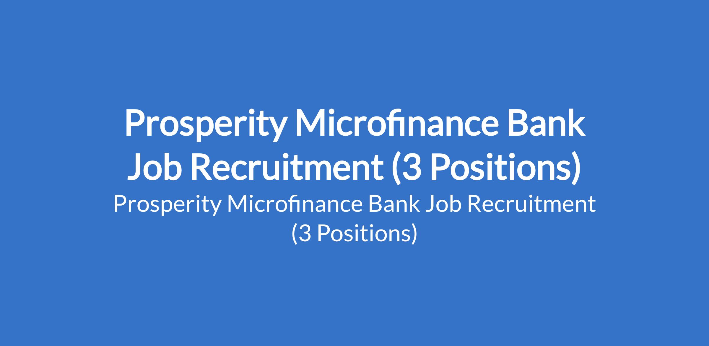 Prosperity Microfinance Bank Job Recruitment (3 Positions)