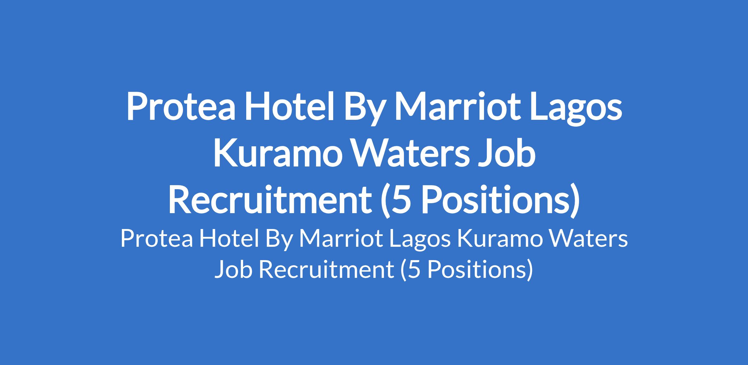 Protea Hotel By Marriot Lagos Kuramo Waters Job Recruitment (5 Positions)