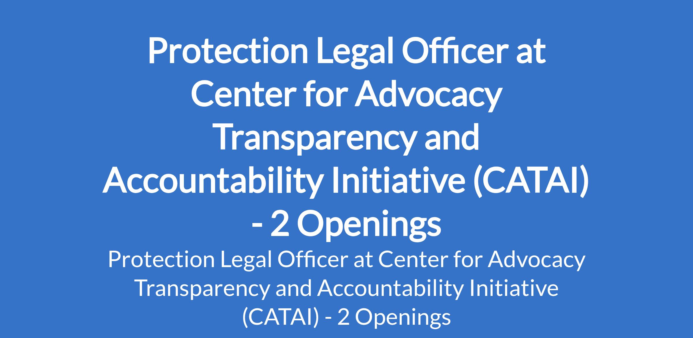 Center for Advocacy Transparency and Accountability Initiative (CATAI) is recruiting to fill the position of: Legal Officer. The position is located in Ngala and Kaga LGAs, Borno State. Interested candidates should possess a Bachelor's Degree in Law (LL. B) with 35 years of relevant experience, preferably in humanitarian or protection programming.