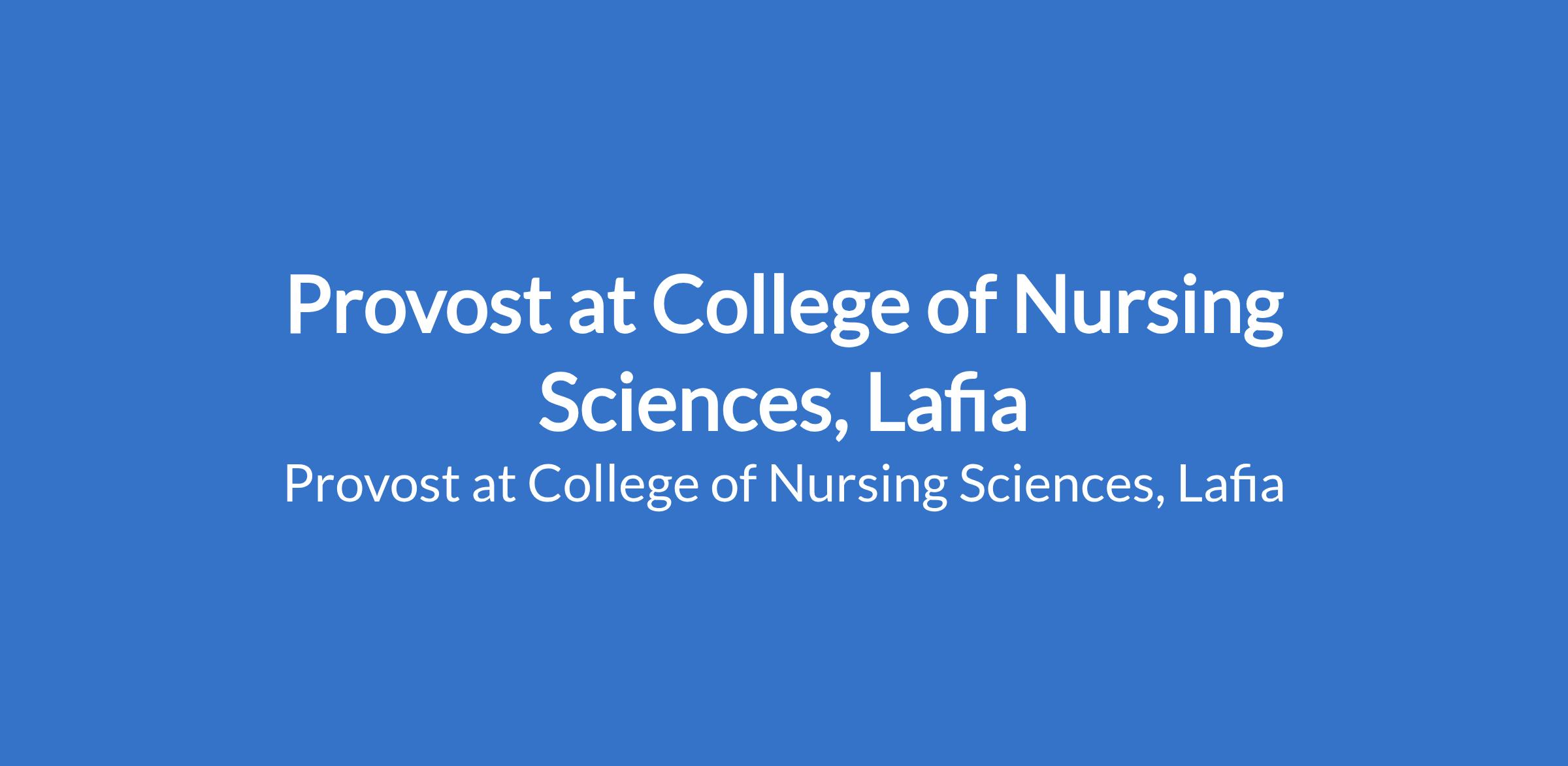 College of Nursing Sciences, Lafia invites applications from suitably qualified candidates to fill the position of: Provost. The position is located in Nasarawa State. Interested candidates should possess minimum of a post-graduate Degree (M.Sc) in Nursing or Midwifery with a minimum of ten (10) years Teaching and Administrative experience, and must be a registered Nurse / Midwifery Educator.