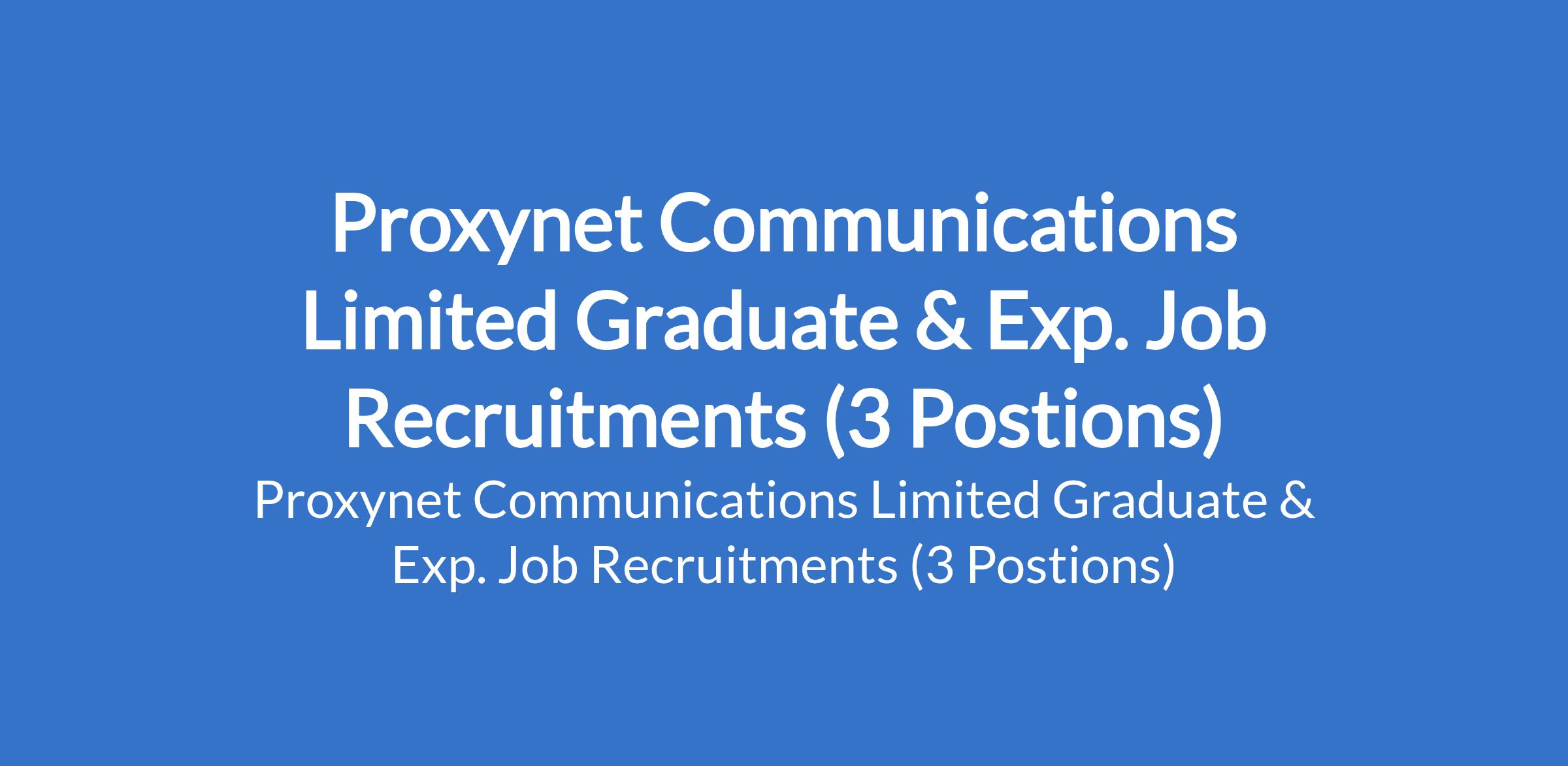 Proxynet Communications Limited is recruiting suitably qualified candidates to fill the following Graduate & Experienced positions in Lagos State: Experienced Corporate Driver, Coding & Robotics Educator / Facilitator (Intern), and Coding & Robotics Educator / Facilitator.