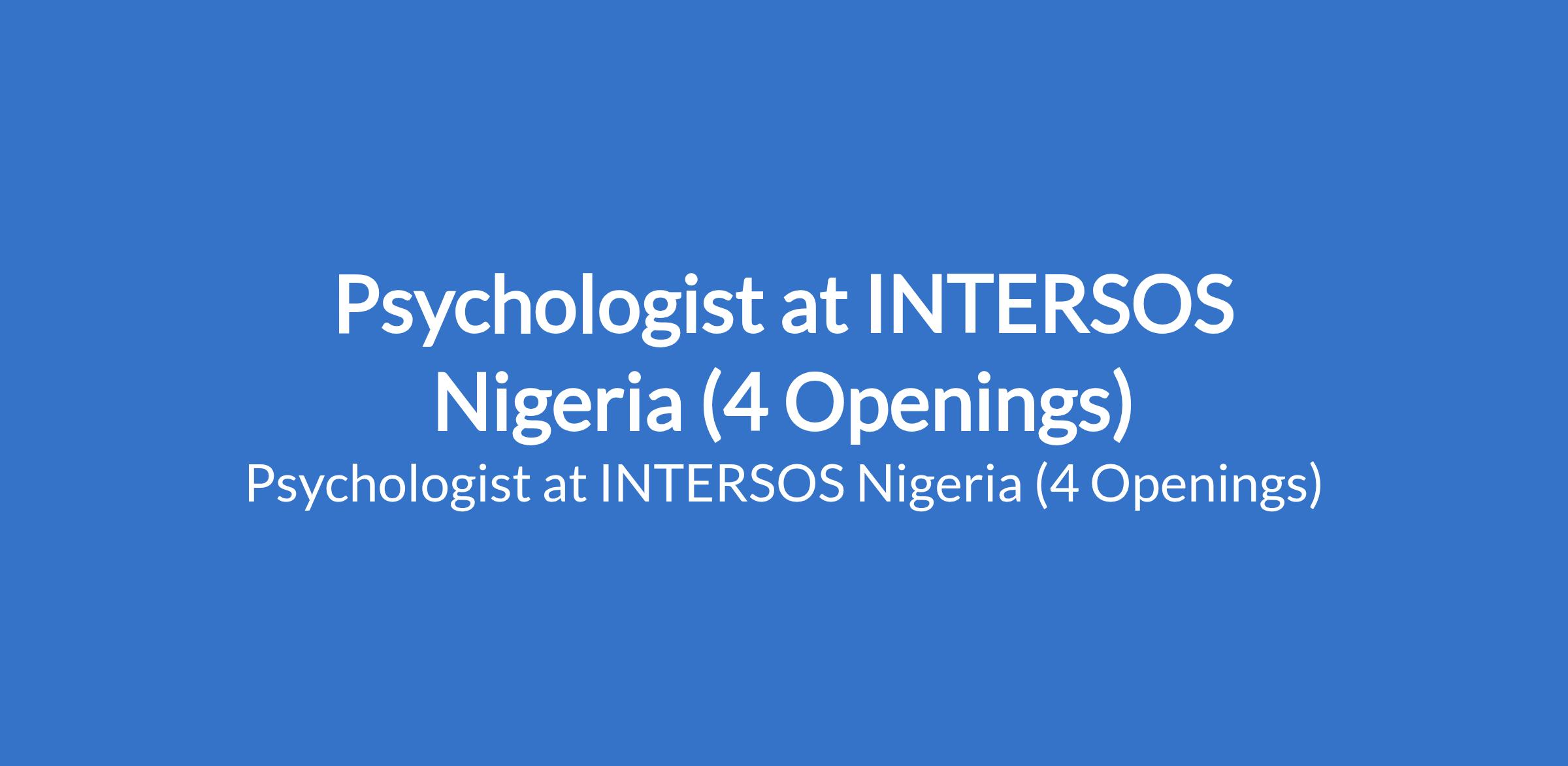 INTERSOS Nigeria is recruiting to fill the position of: Psychologist. The Position is located in Dikwa, Monguno, Magumeri, and Maiduguri, Borno State. Interested candidates should possess a University Degree in Psychology (Clinical or Counseling Psychology preferred), with a minimum of 3 years relevant work experience, including at least one year in INGO.