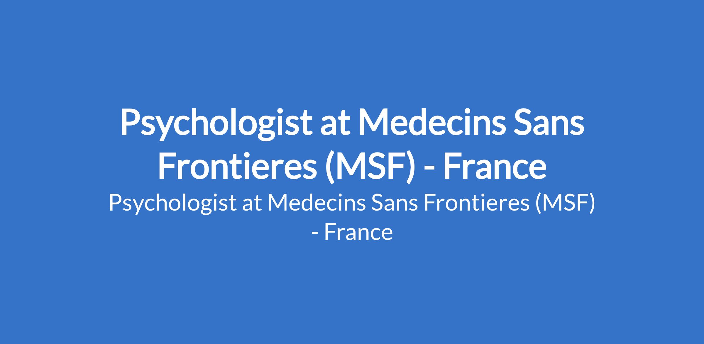Psychologist at Medecins Sans Frontieres (MSF) - France