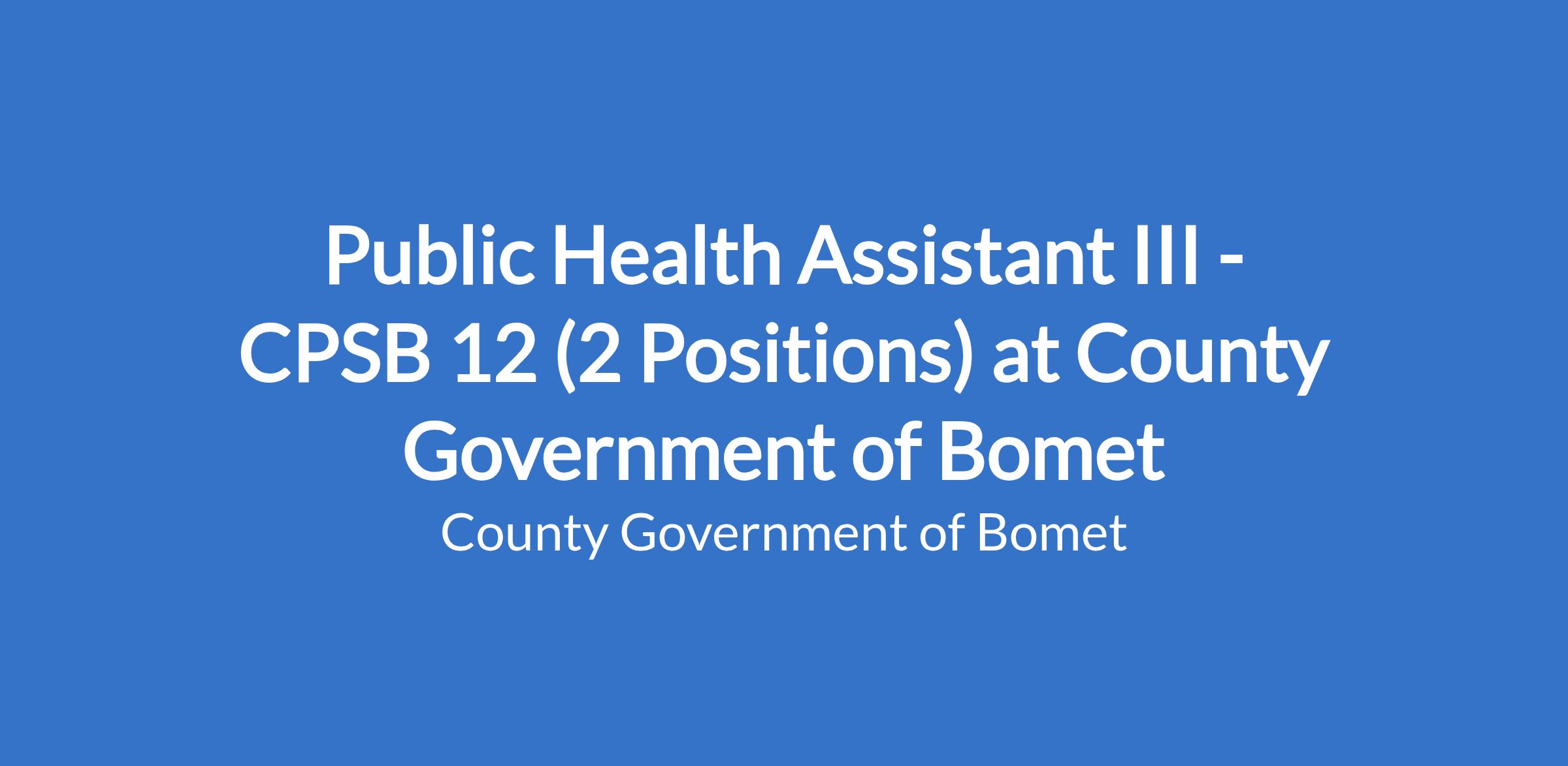 Public Health Assistant III - CPSB 12 (2 Positions) at County Government of Bomet