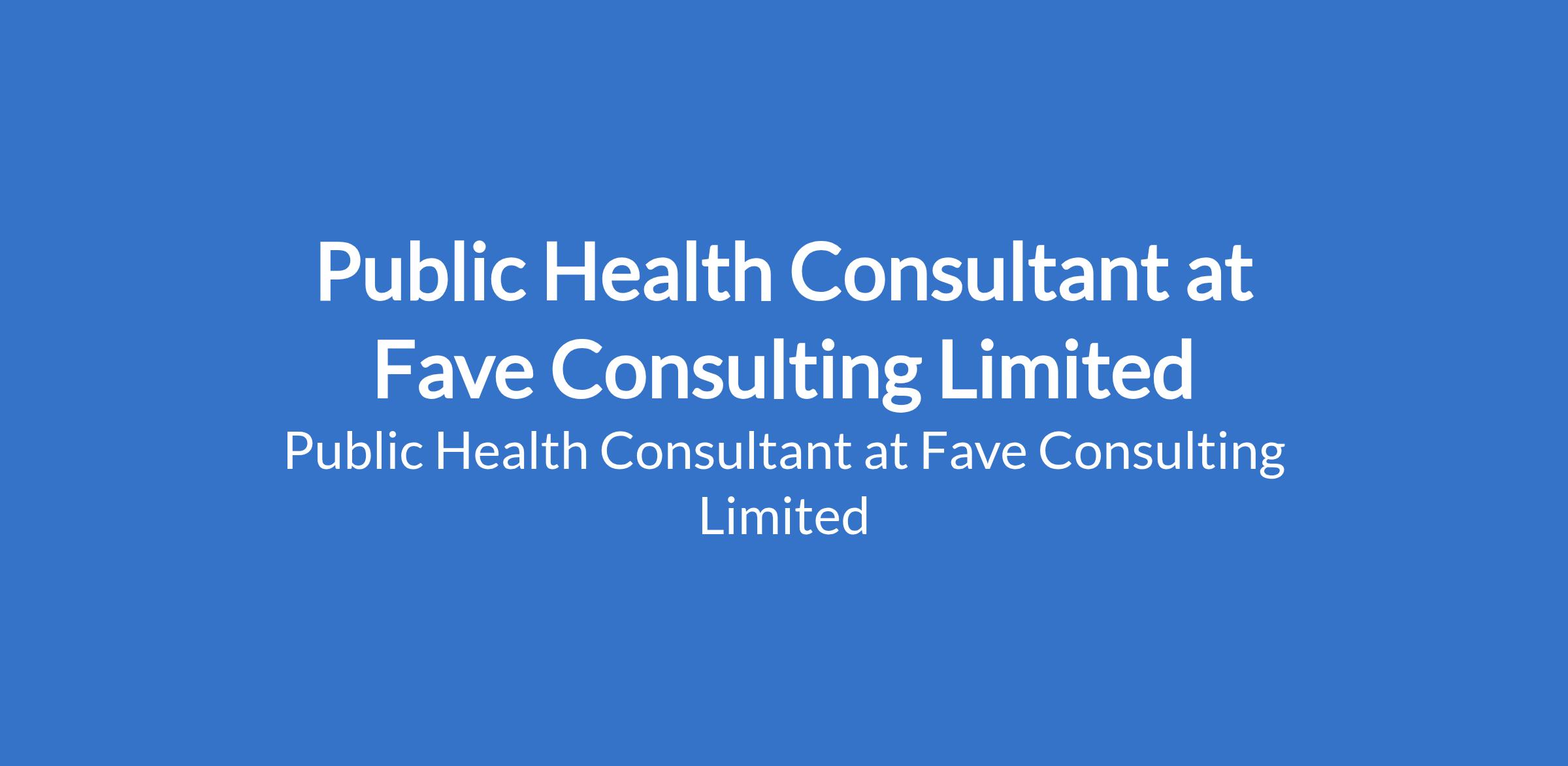 Fave Consulting Limited is recruiting to fill the position of: Public Health Consultant. The position is located in Lagos State. Salary: N80,000 - N120,000 per month. Interested candidates should possess a Bachelors Degree in Public Health, Epidemiology, Health Sciences, or related fields.