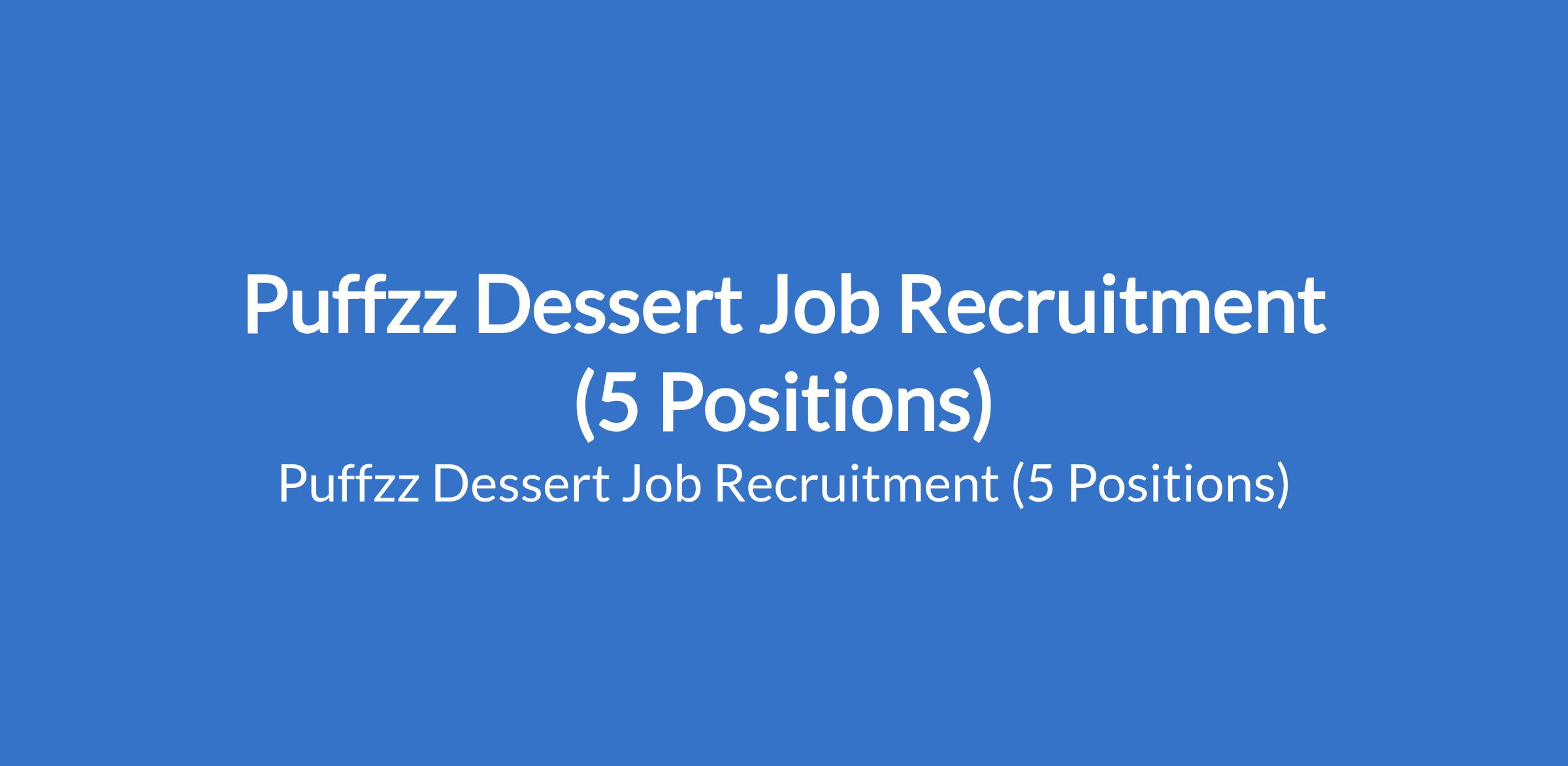 Puffzz Dessert is recruiting suitably qualified candidates to fill the following positions in Abuja:Operation Manager, Baker & Cook, Floor Supervisor, Cashier, and Customer Service Officer.