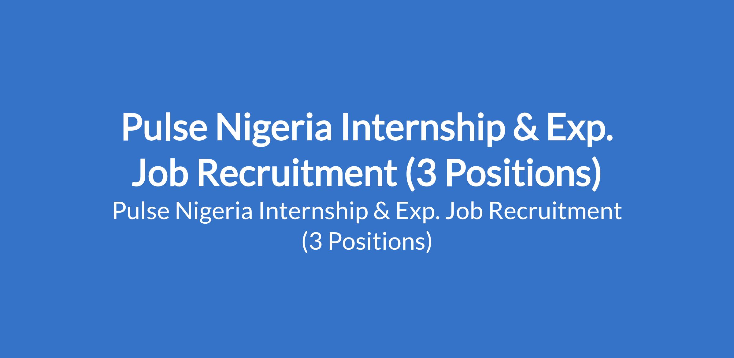 Pulse Nigeria Internship & Exp. Job Recruitment (3 Positions)