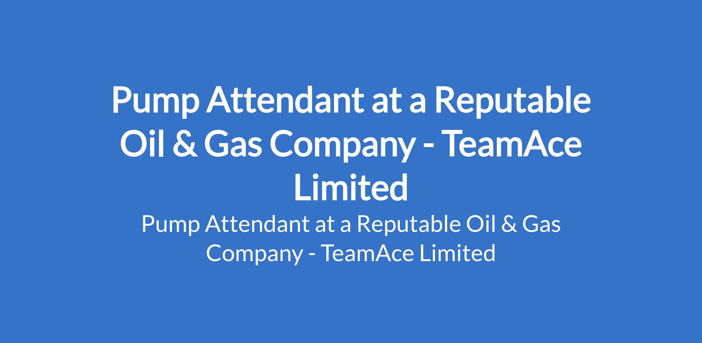 TeamAce Limited - Our client, a reputable organization in the Oil & Gas sector is recruiting to fill the position of: Pump Attendant. The position is located in Alakija, Old Ojo Road - Lagos State. Salary: N70,000 monthly. Interested candidates should possess a minimum of an SSCE qualification.