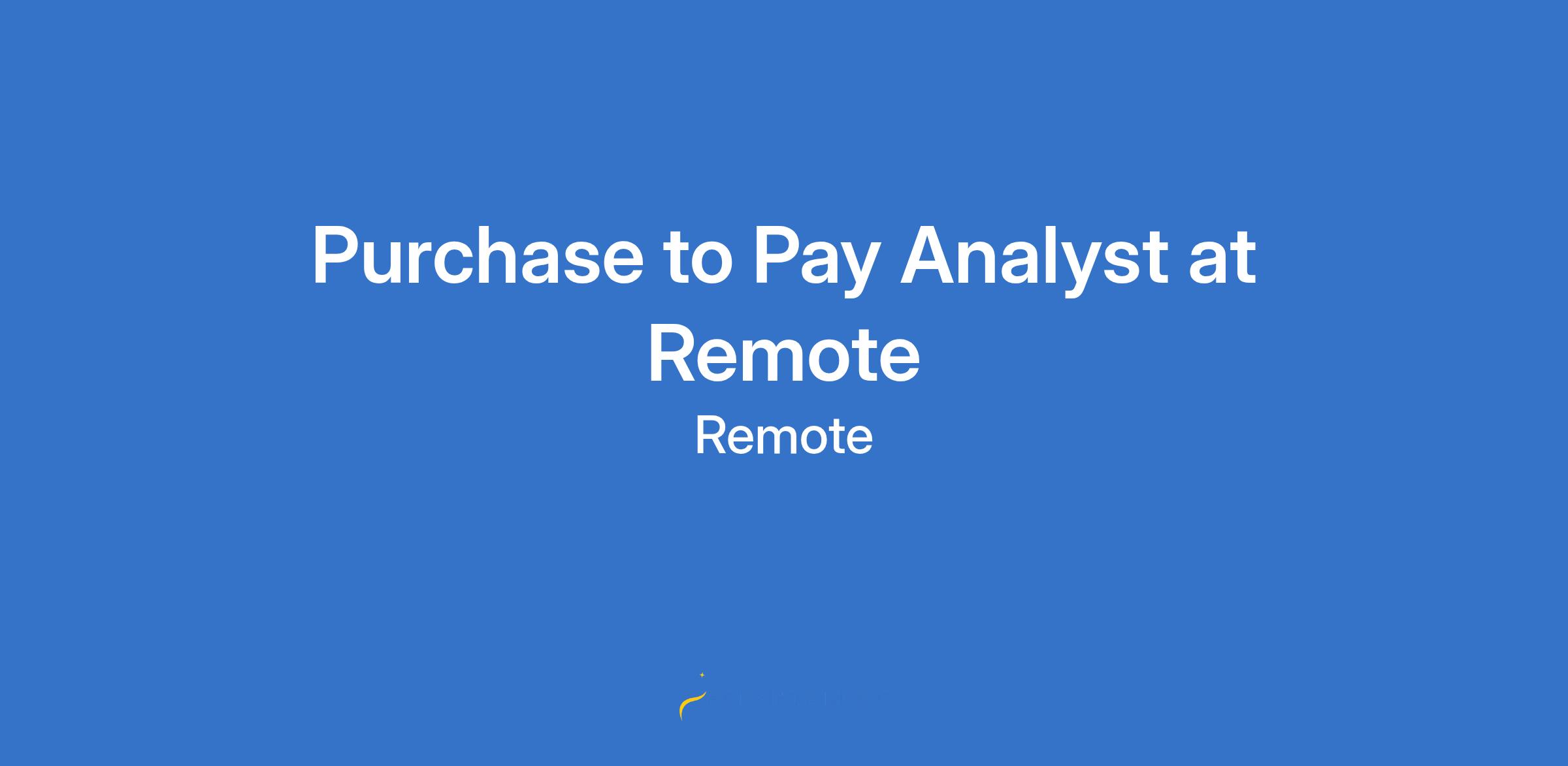Purchase to Pay Analyst at Remote