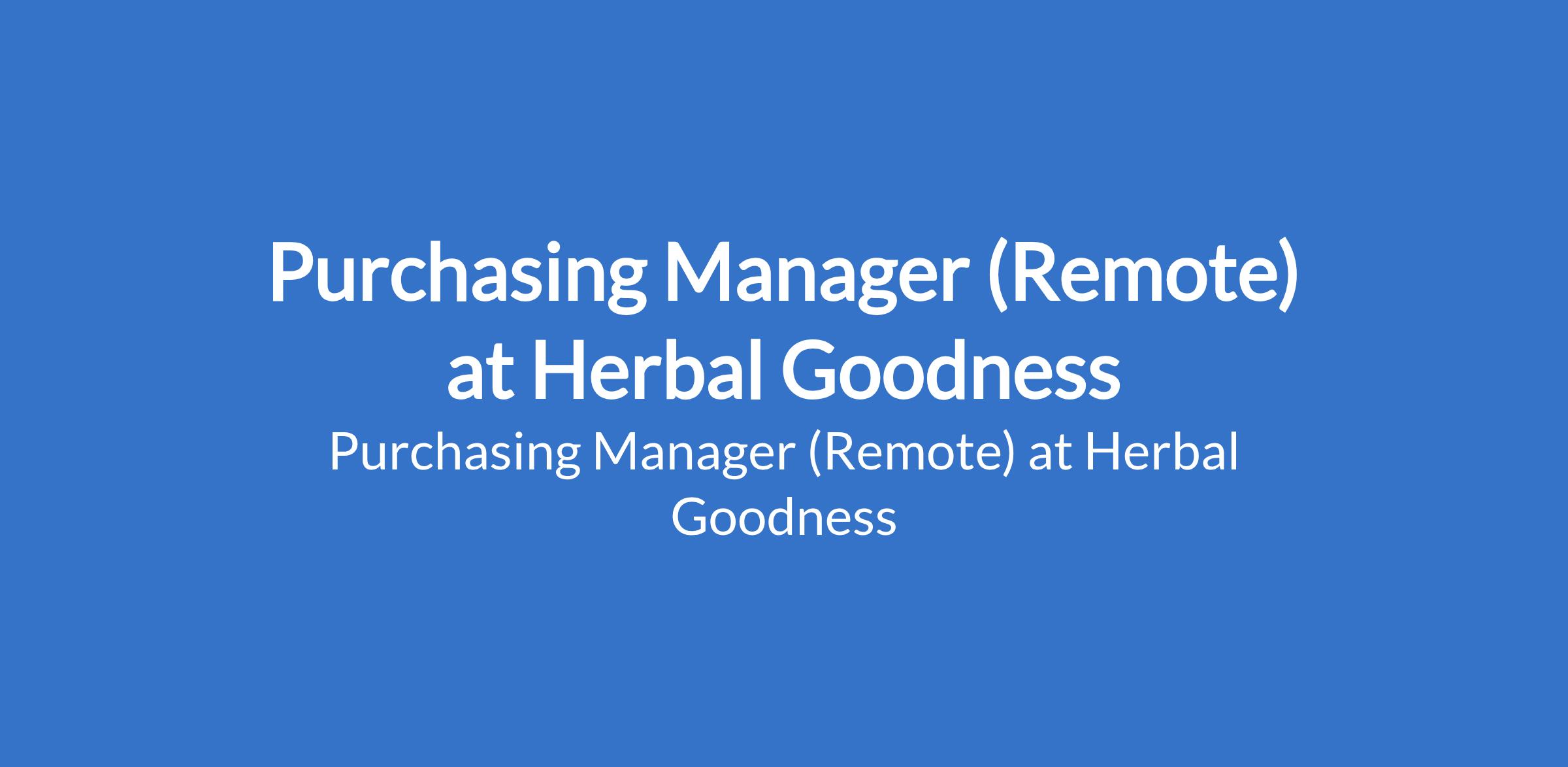 Herbal Goodness is recruiting to fill the position of: Purchasing Manager. This is a Remote Job. Interested candidates should possess relevant qualifications with a minimum of 5 years of experience as a Purchasing Manager, Procurement Specialist, or Supply Chain Lead.