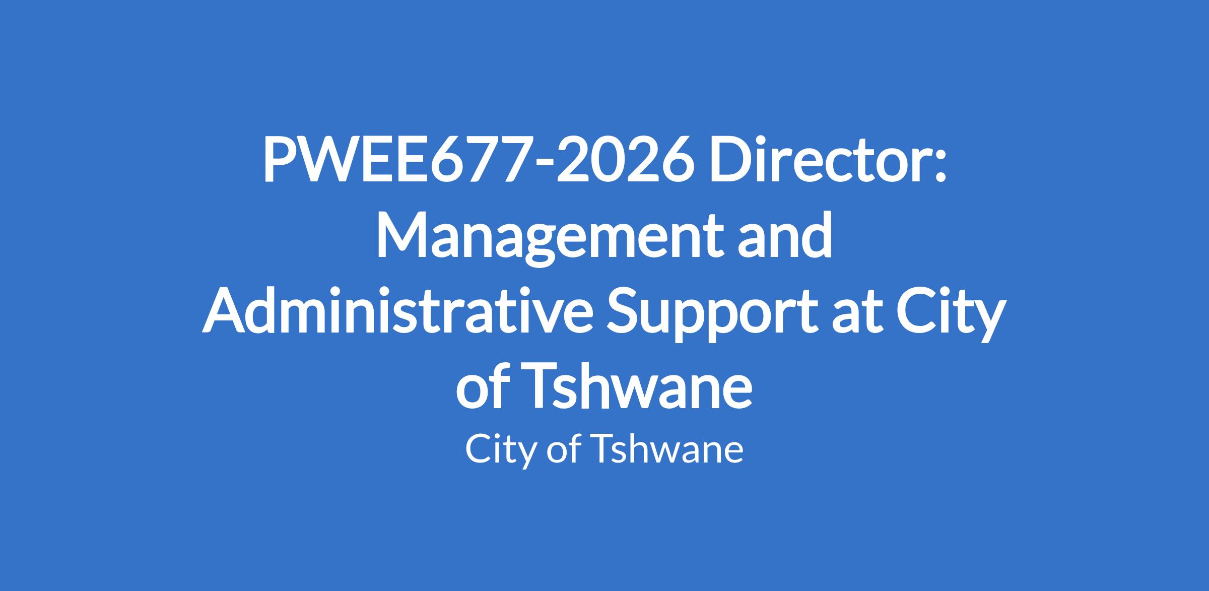 PWEE677-2026 Director: Management and Administrative Support at City of Tshwane