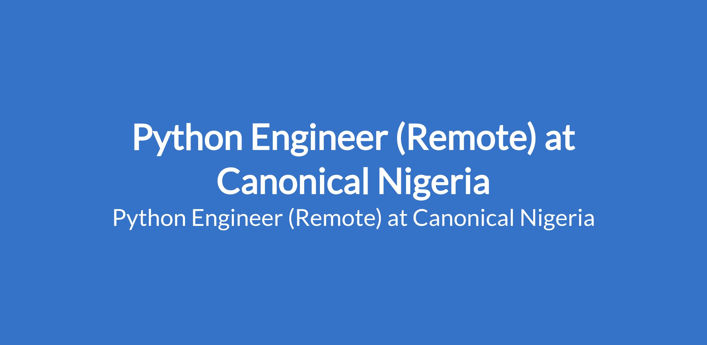 Canonical Nigeria is recruiting to fill the position of: Python Engineer. The position is located in Lagos State (Remote). Interested candidates should possess a relevant qualification.