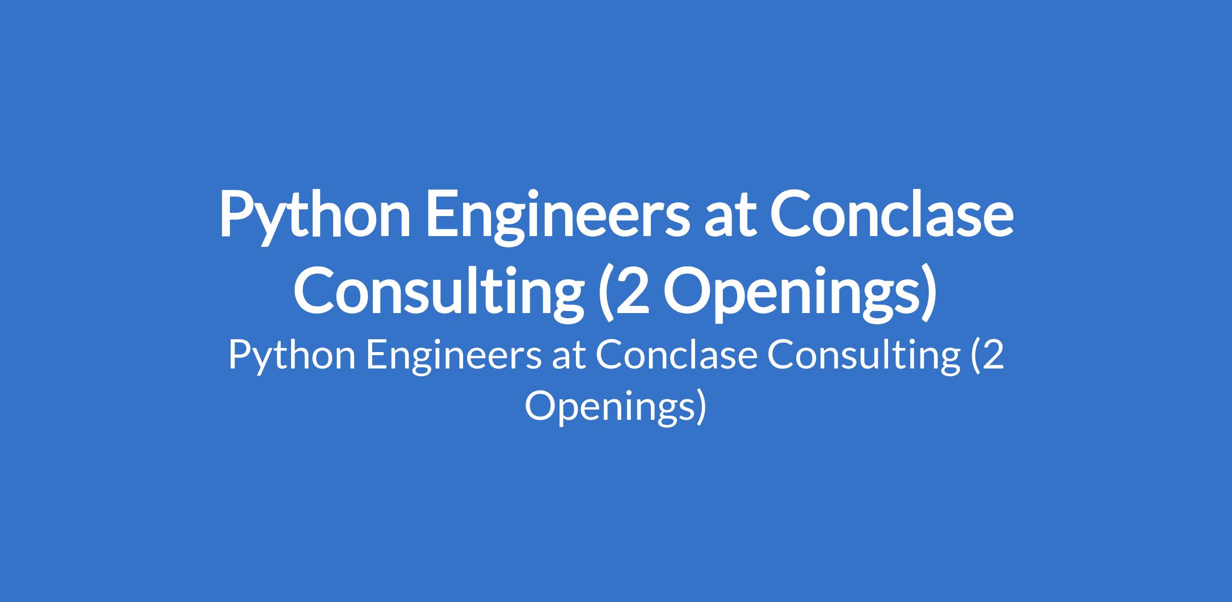 Conclase Consulting is recruiting to fill the position of: Python Engineer. The position is located in Ikeja & Lekki, Lagos State. Interested candidates should possess relevant qualifications with 5+ years of experience; Banking or Fintech experience.
