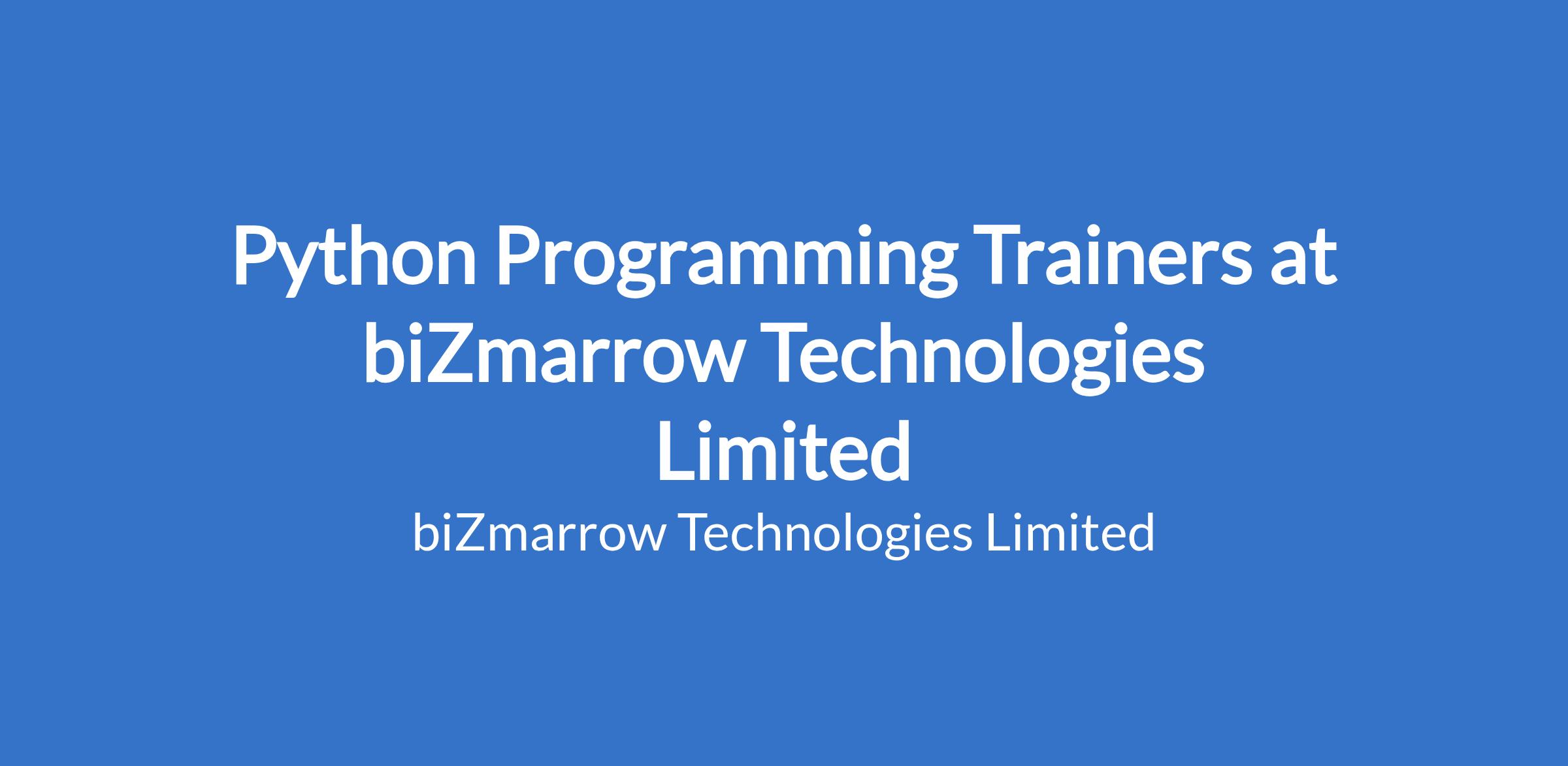 Python Programming Trainers at biZmarrow Technologies Limited