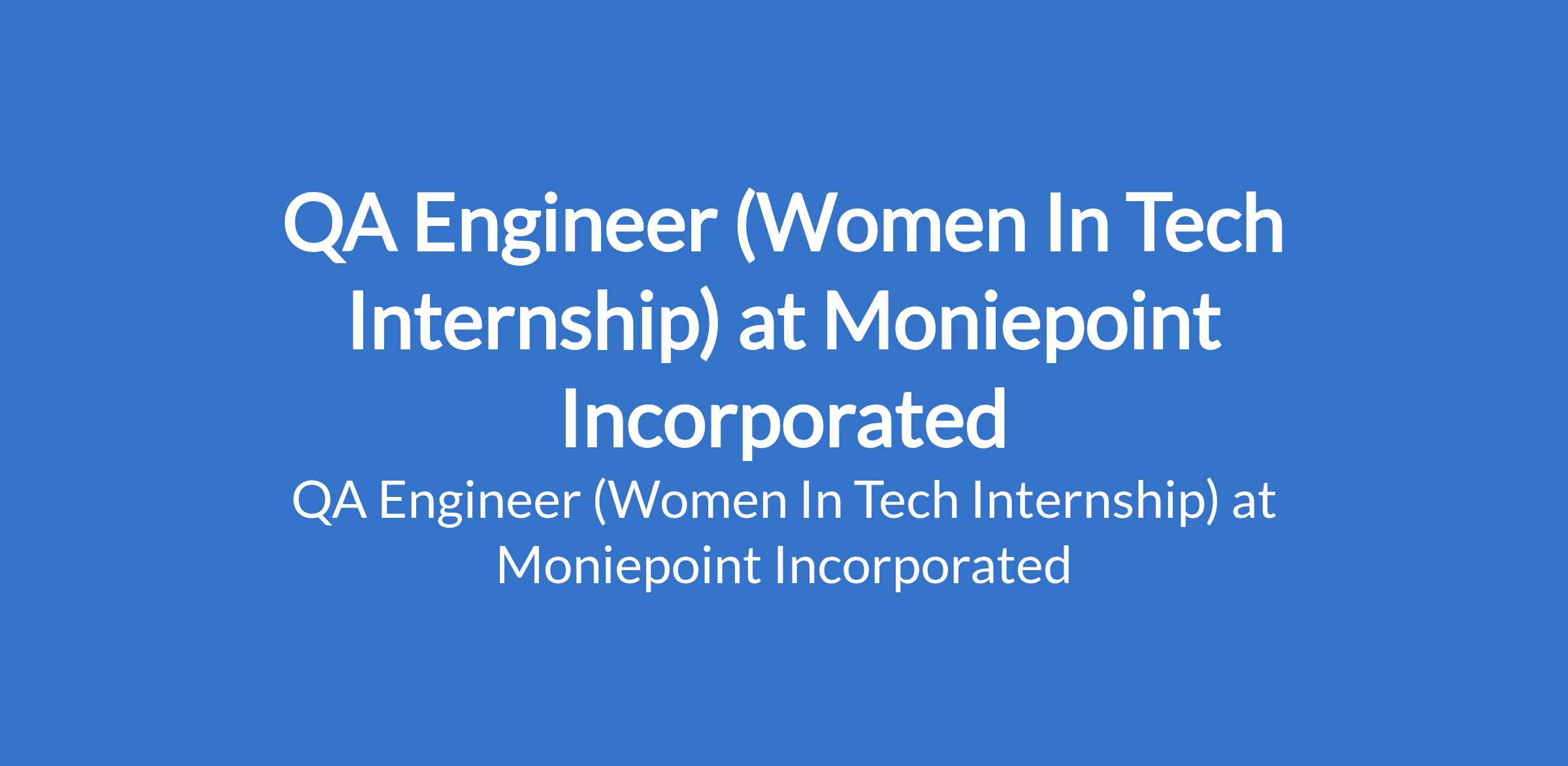 Moniepoint Incorporated is recruiting to fill the position of: QA Engineer (Women In Tech Internship). The position is Located in Lagos State. Interested candidates should possess a Bachelor's Degree in Engineering, Computer Science or related fields with experience in software design and development in a test-driven environment.