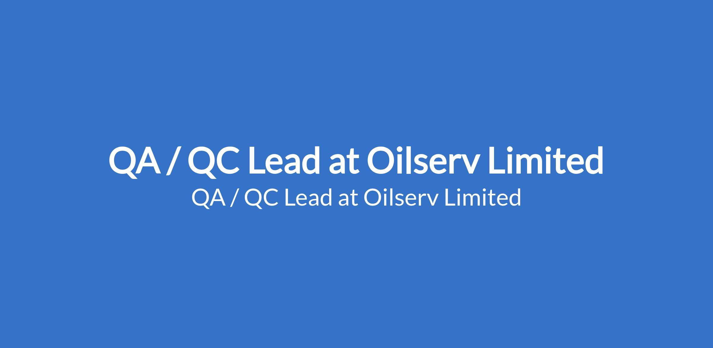 Oilserv Limited is recruiting to fill the position of: QA / QC Lead. The position is located in Rivers State. Interested candidates should possess a Bachelors Degree / HND in Engineering or Science Related Course with 12 years QA/QC working experience in Oil and Gas industry with flare for career development in QA/QC.