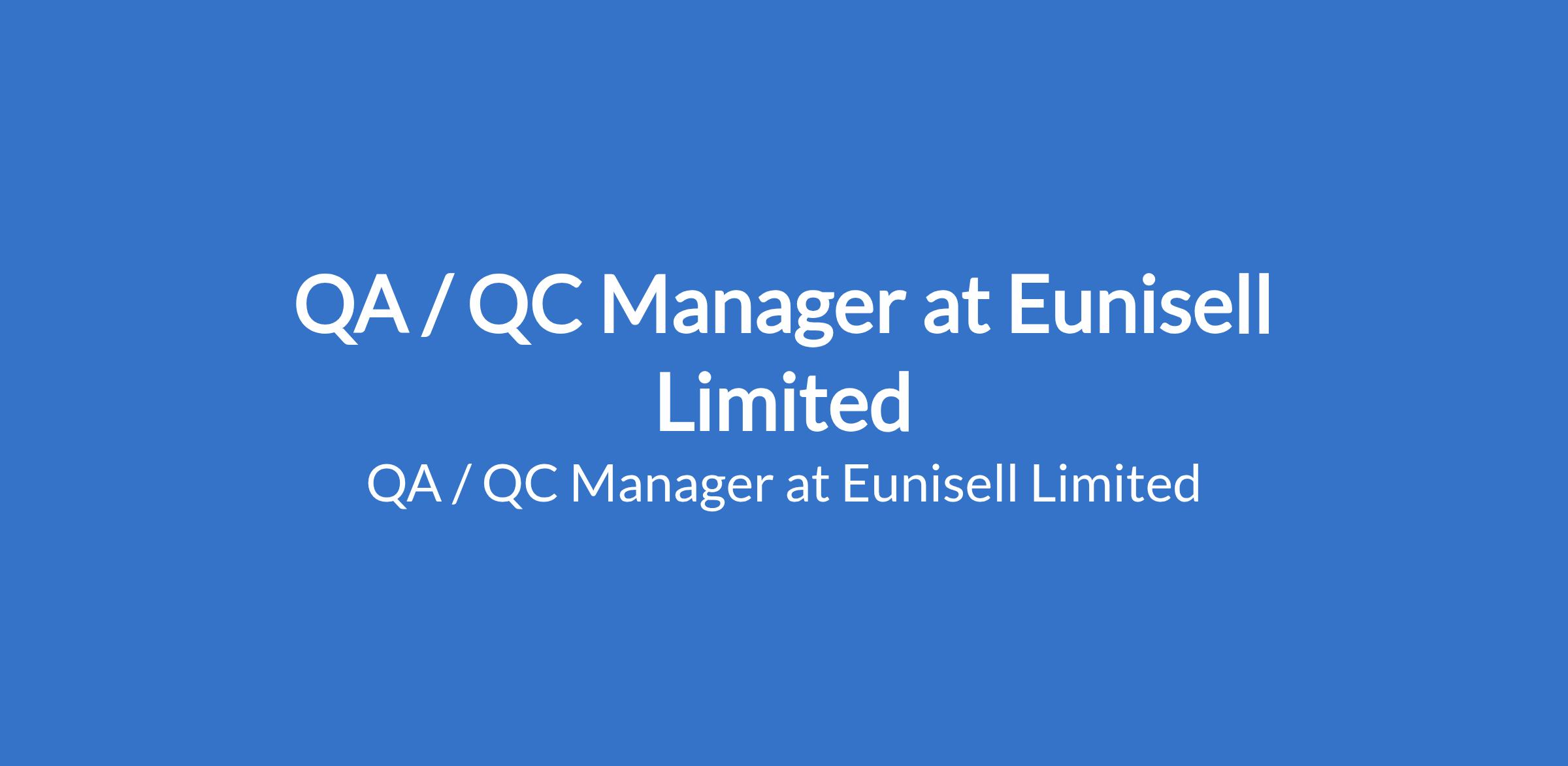 Eunisell Limited is recruiting to fill the position of: QA / QC Manager. The position is located in Port Harcourt, Rivers State. Interested candidates should possess a Degree in Engineering, Business management, project management or related field from a recognized university with a minimum of 10 years experience, particularly in oil & gas, manufacturing, or construction sectors, a Masters Degree in business administration will be advantageous.
