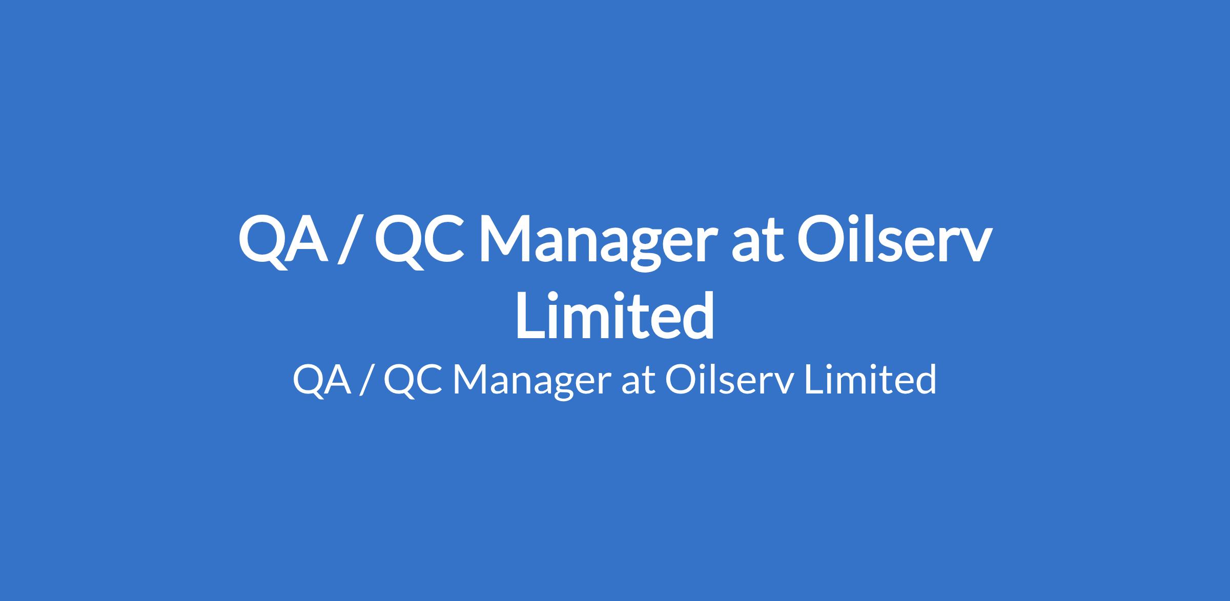Oilserv Limited is recruiting to fill the position of: QA / QC Manager. The Position is Located in Rivers State. Interested candidates should possess a Bachelor Degree / HND in Mechanical Engineering or any relevant engineering discipline with a minimum 10 years experience in Quality Assurance / Control associated with major pipeline projects in the Oil & Gas Industry, with senior QA/QC supervisory experience.