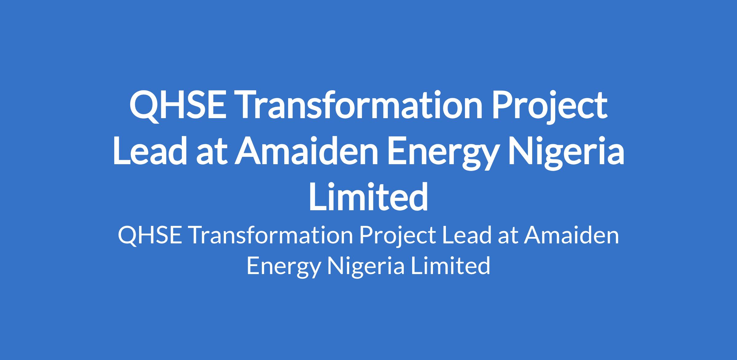 QHSE Transformation Project Lead at Amaiden Energy Nigeria Limited