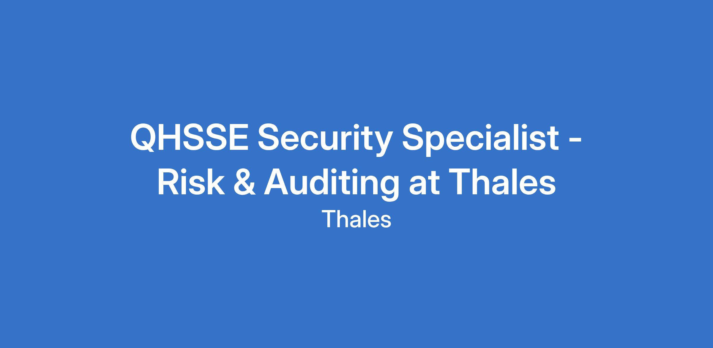 QHSSE Security Specialist - Risk & Auditing at Thales