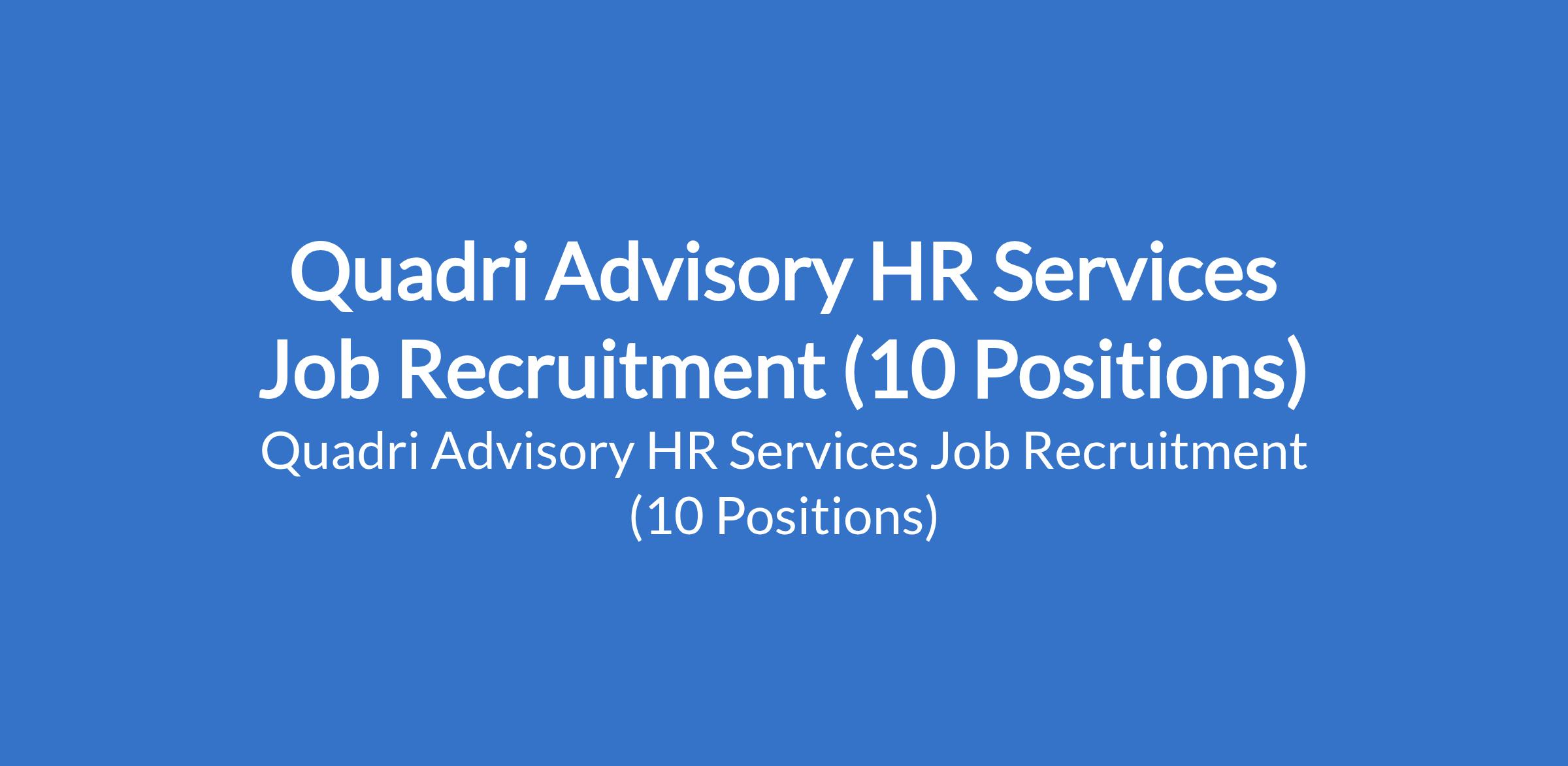 Quadri Advisory HR Services Limited is recruiting suitable candidates to fill the following positions in Lagos State: Sales Manager, Personal Assistant, Business Consultant, Corporate Trainer, Business Communications Specialist, Business Analyst, Consultant, Administrator, Corporate Training Officer, and Operation Coordinator.