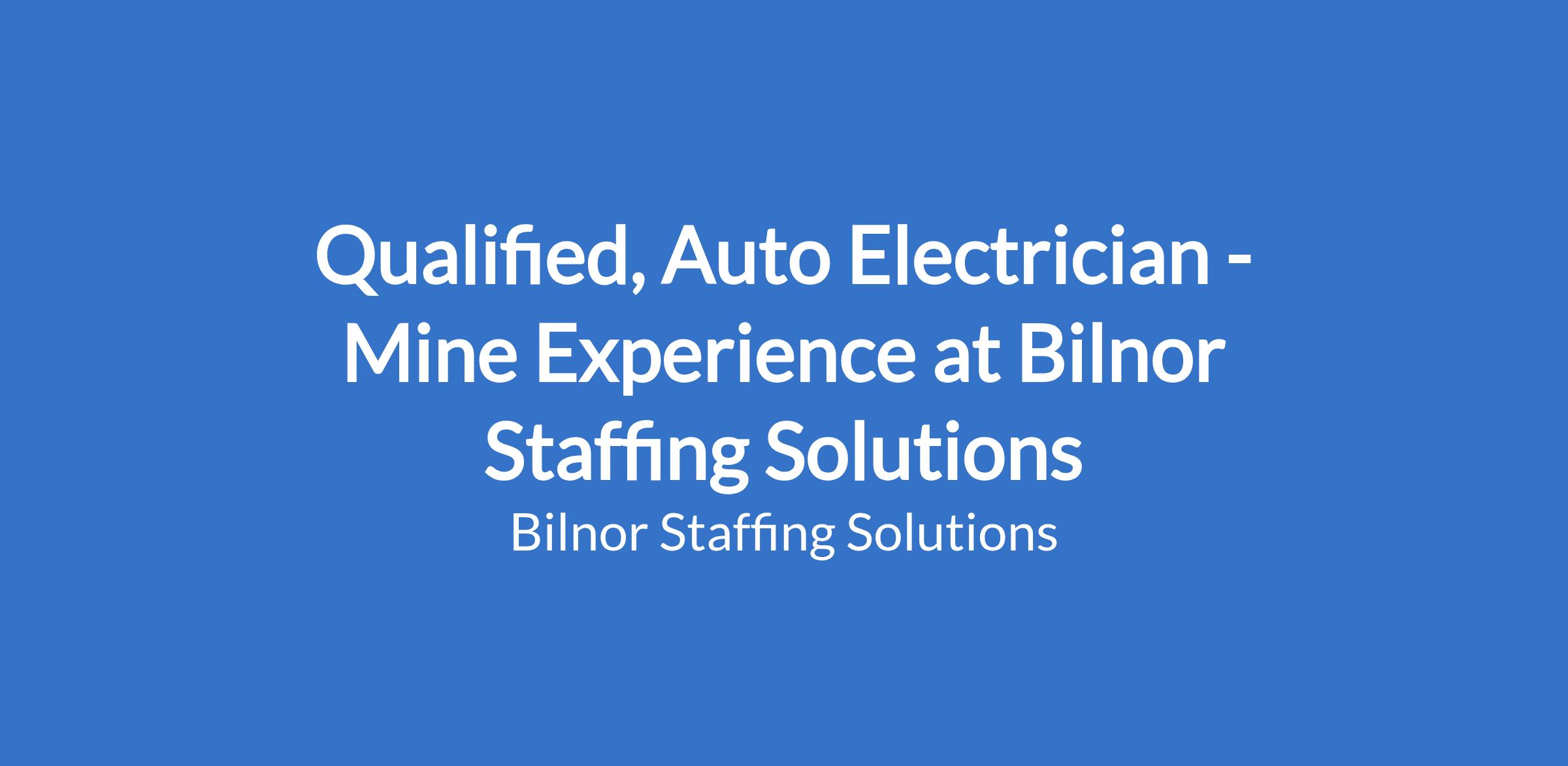 Bilnor Staffing Solutions' client is seeking qualified, experienced Auto Electrician for permanent positions in Griekwastad, NC.