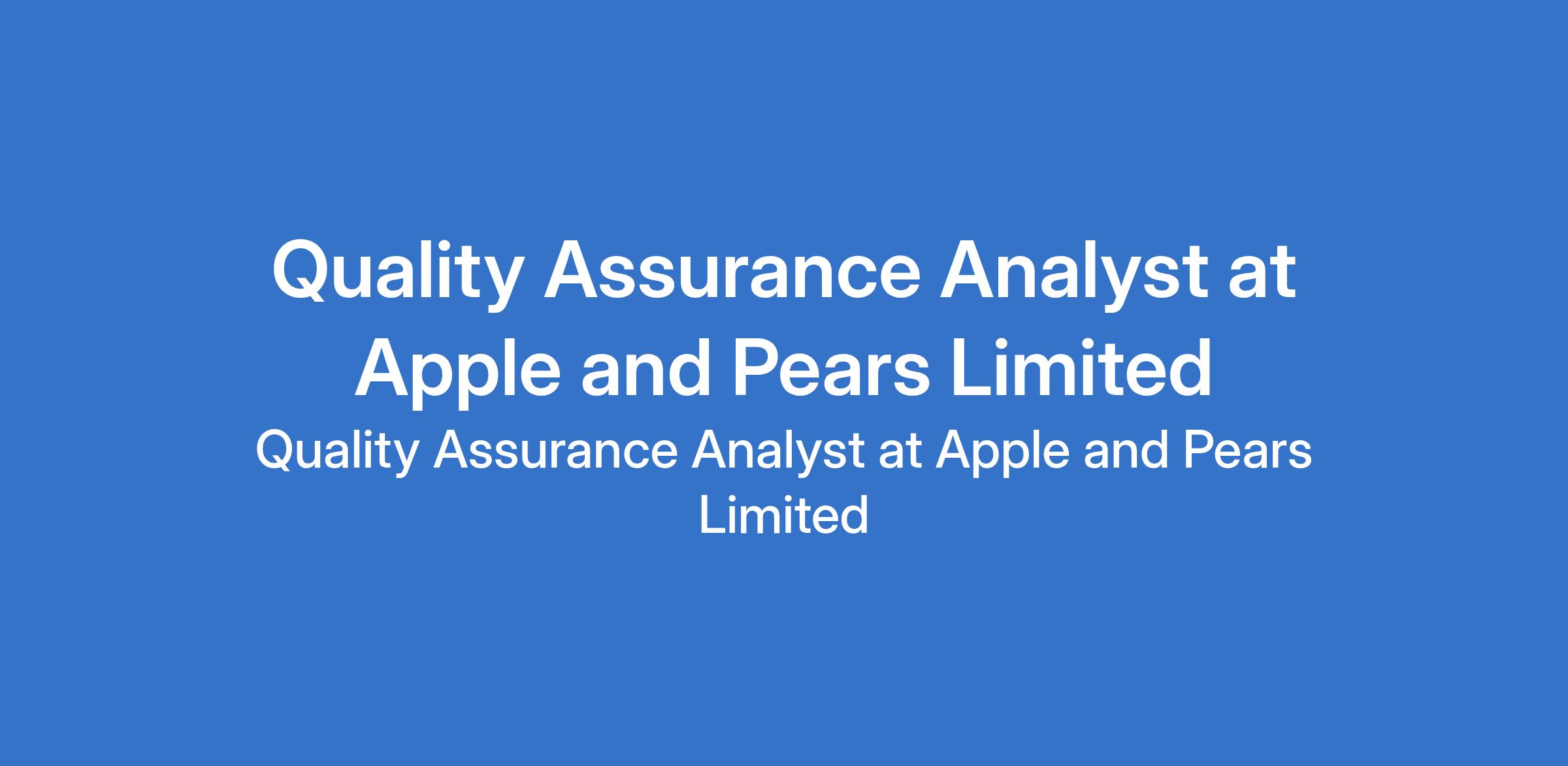 Apple and Pears Limited is recruiting to fill the position of: Quality Assurance Analyst. The position is located in Sagamu, Ogun State. Salary: N150,000 monthly. Interested candidates should possess a minimum of OND / HND / B.Sc Degree in Food Science, Microbiology, Biochemistry, or a related discipline with 2 3 years experience in a QA Analyst or similar quality assurance role within a food manufacturing environment and candidates must reside in Sagamu, Ogun State, or nearby environs.
