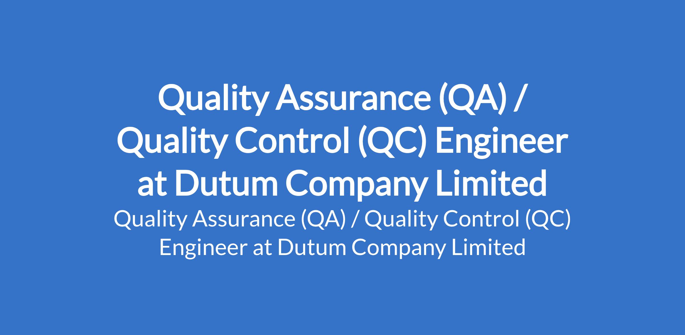Dutum Company Limited is recruiting to fill the position of: Quality Assurance / Quality Control Engineer. The position is located in Lagos State. Interested candidates should possess a Bachelor's Degree or equivalent qualification in Civil Engineering, Construction Management, or a related field.