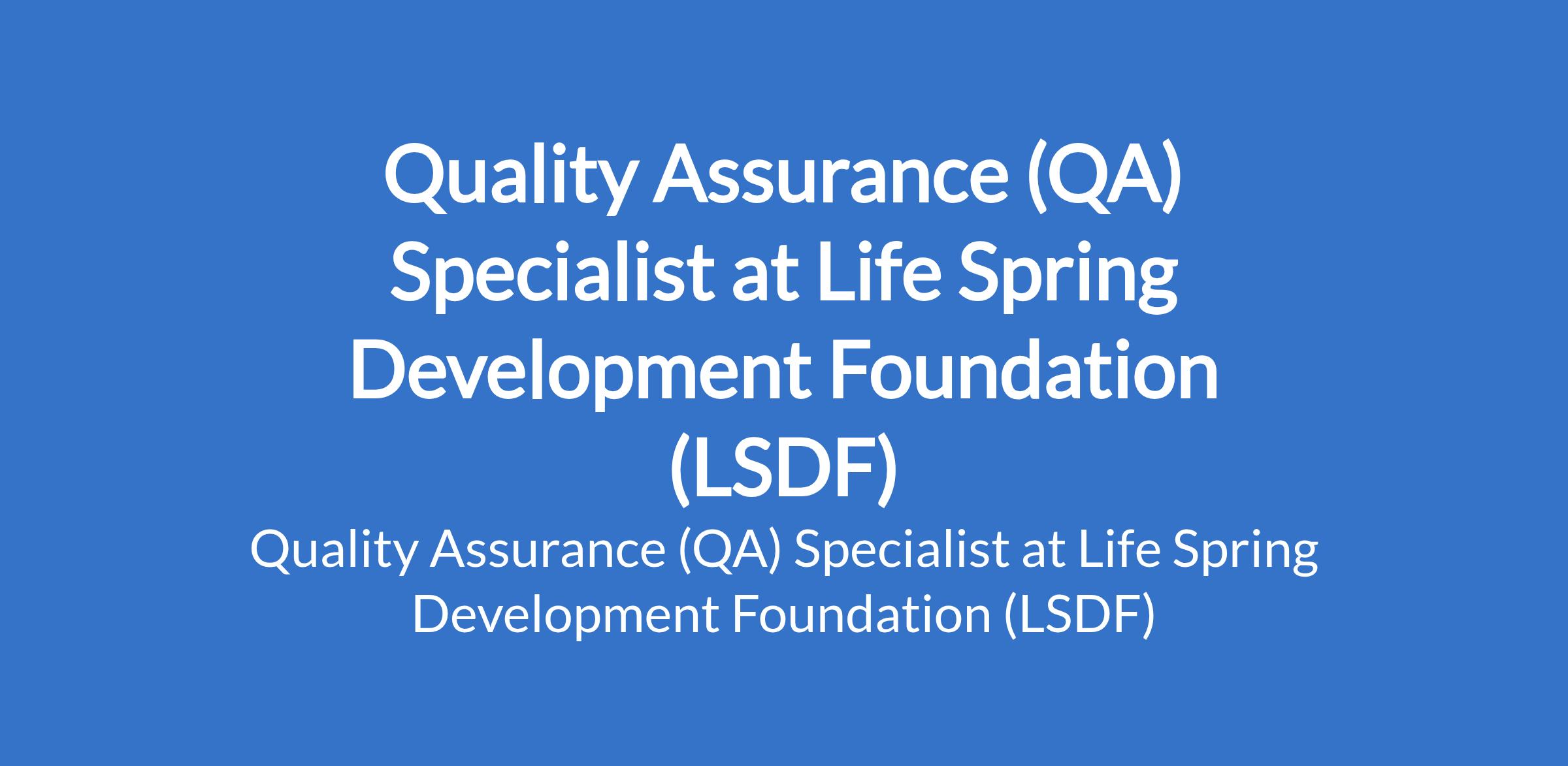 Life Spring Development Foundation (LSDF) is recruiting to fill the position of: Quality Assurance (QA) Specialist. The position is located in Abuja. Interested candidates should possess a Bachelors Degree in Medicine, Nursing or related clinical science. An additional masters degree in public health or health systems management will be an advantage with 710 years experience in quality assurance, clinical supervision, or health systems strengthening, preferably in SRH or PAC programming.