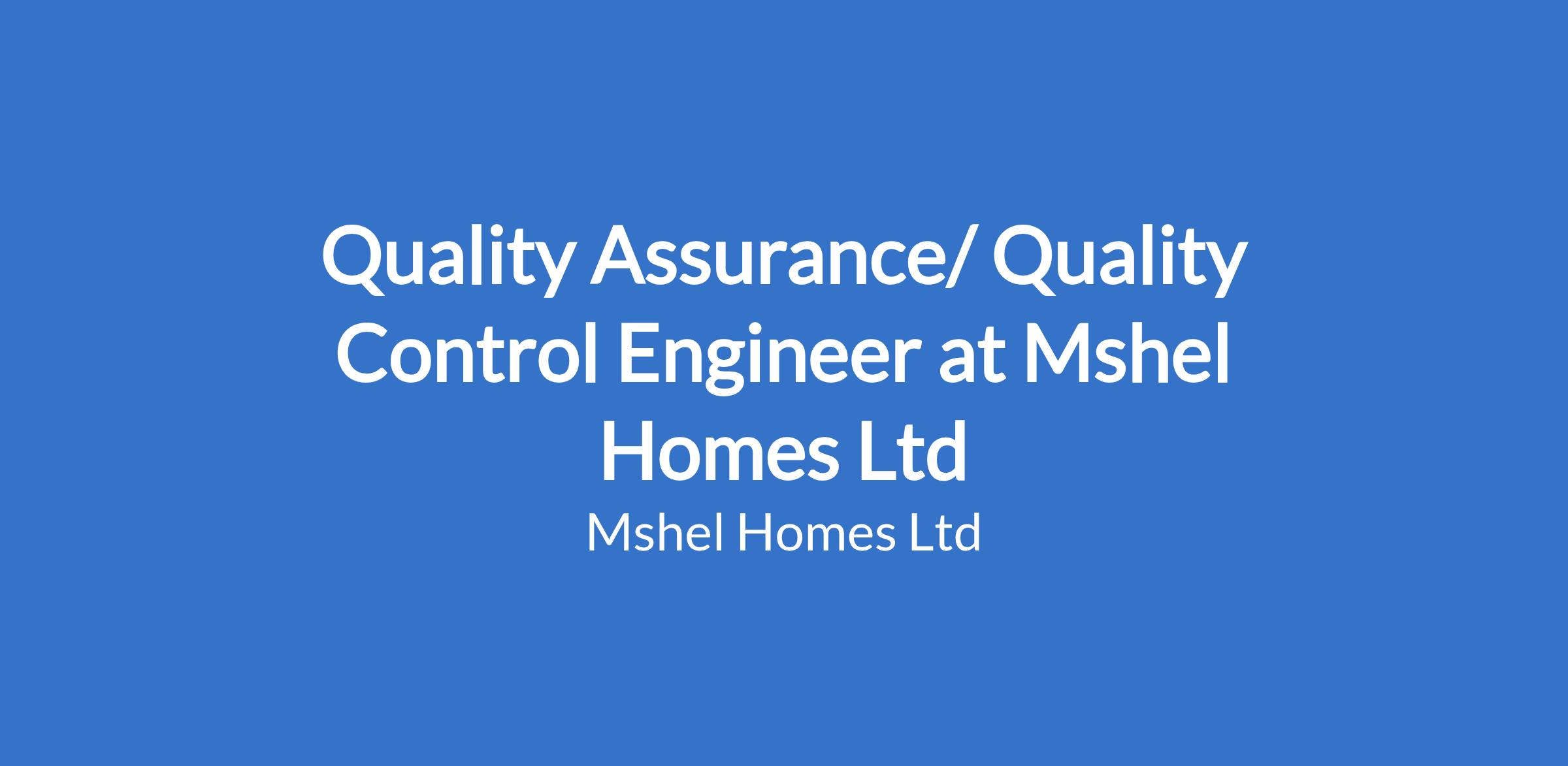 Quality Assurance/ Quality Control Engineer at Mshel Homes Ltd