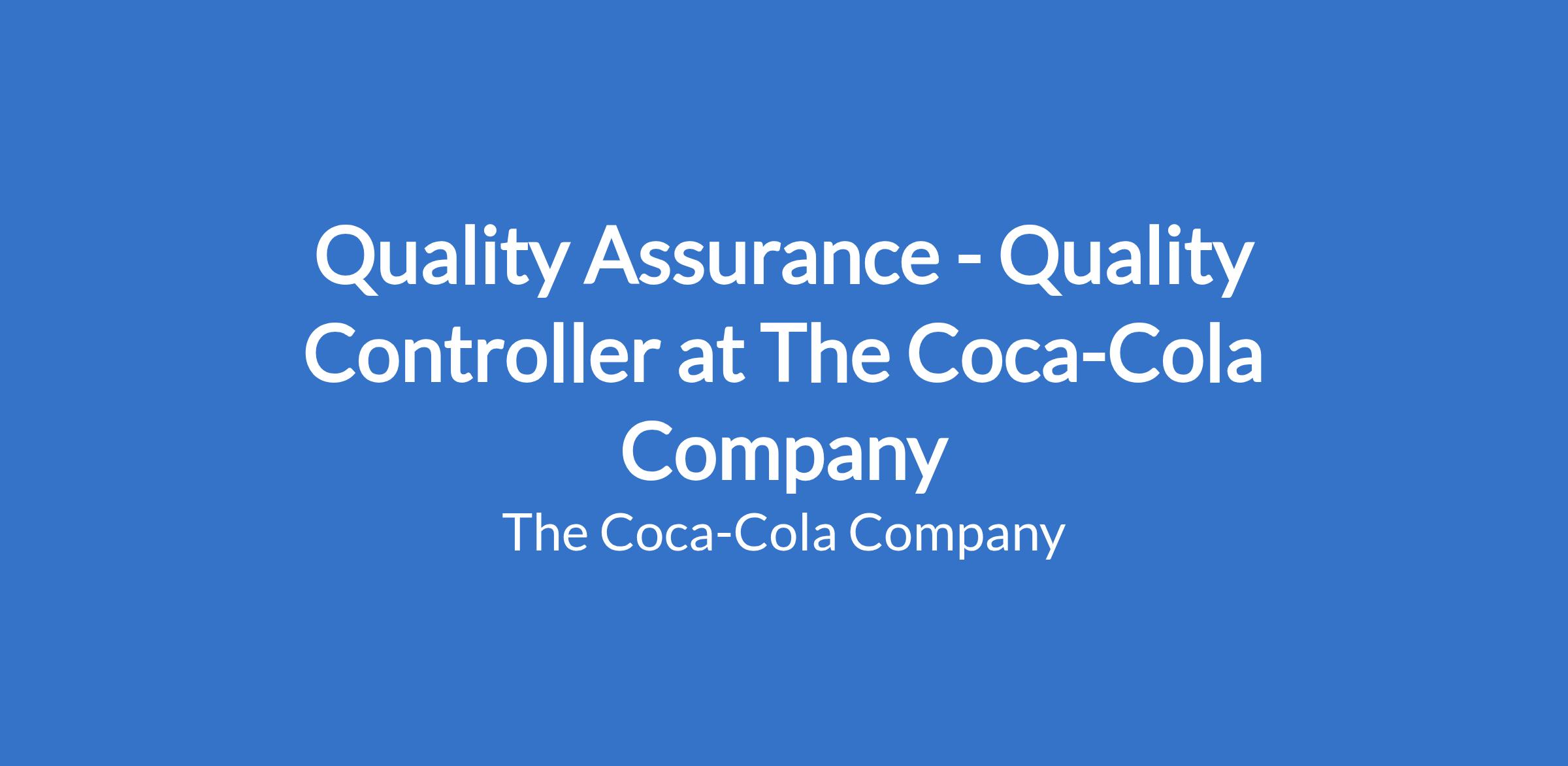 Ensure products meet Coca-Cola Company (TCCC) specifications and food safety standards.
