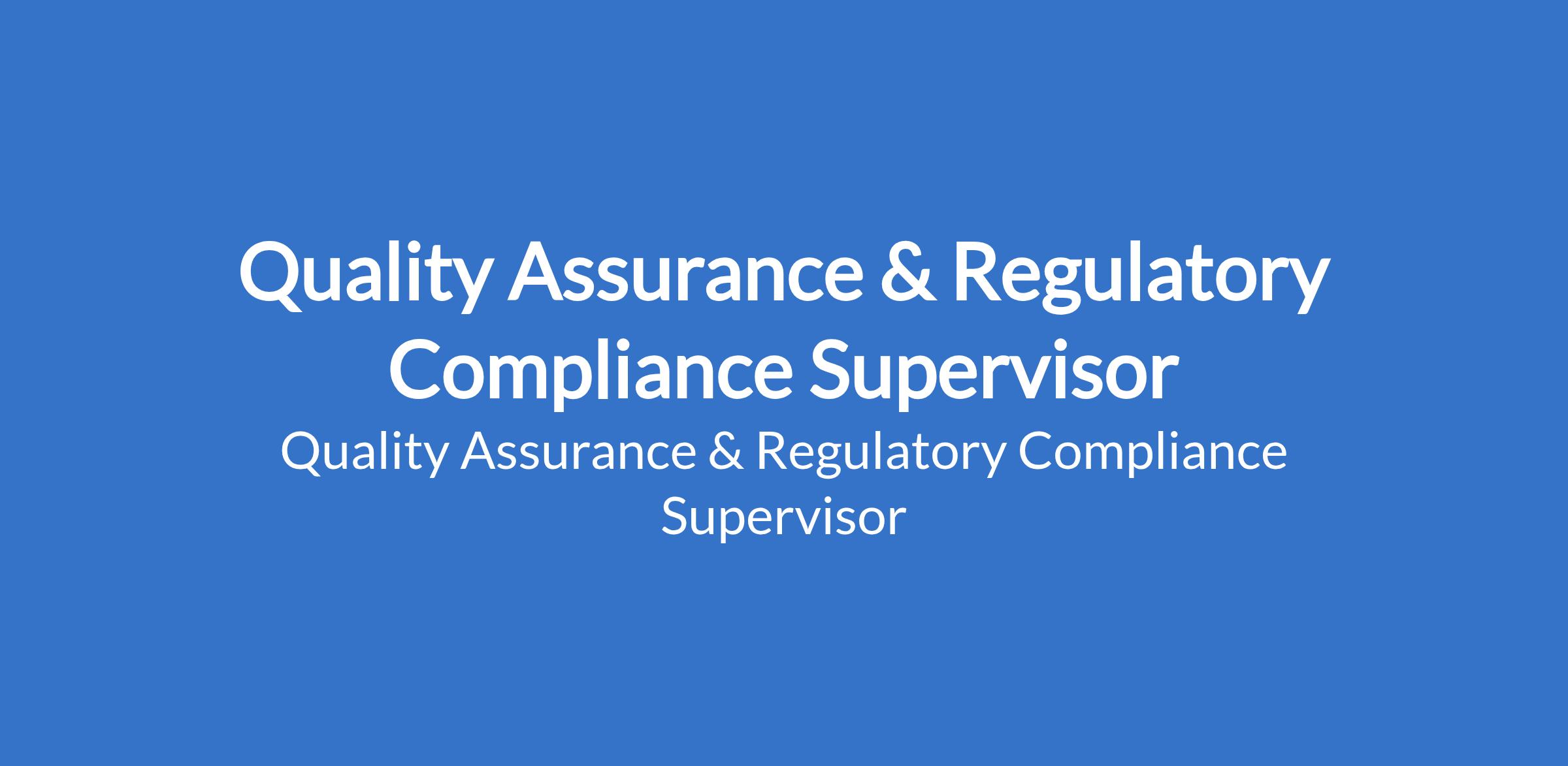 Quality Assurance & Regulatory Compliance Supervisor