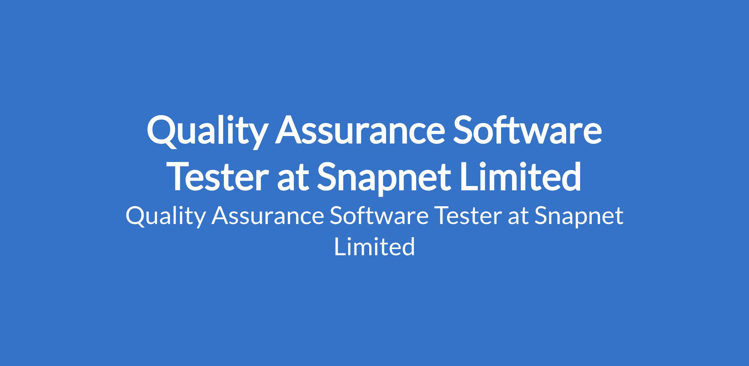 Snapnet Limited is recruiting to fill the position of: Quality Assurance Software Tester. The position is located in Lekki, Lagos State. Salary: N200,000 - N250,000 monthly. Interested candidates should possess a Bachelors Degree in Computer Science, Software Engineering, or a related field with a minimum of 2 years experience in a software testing or QA role.