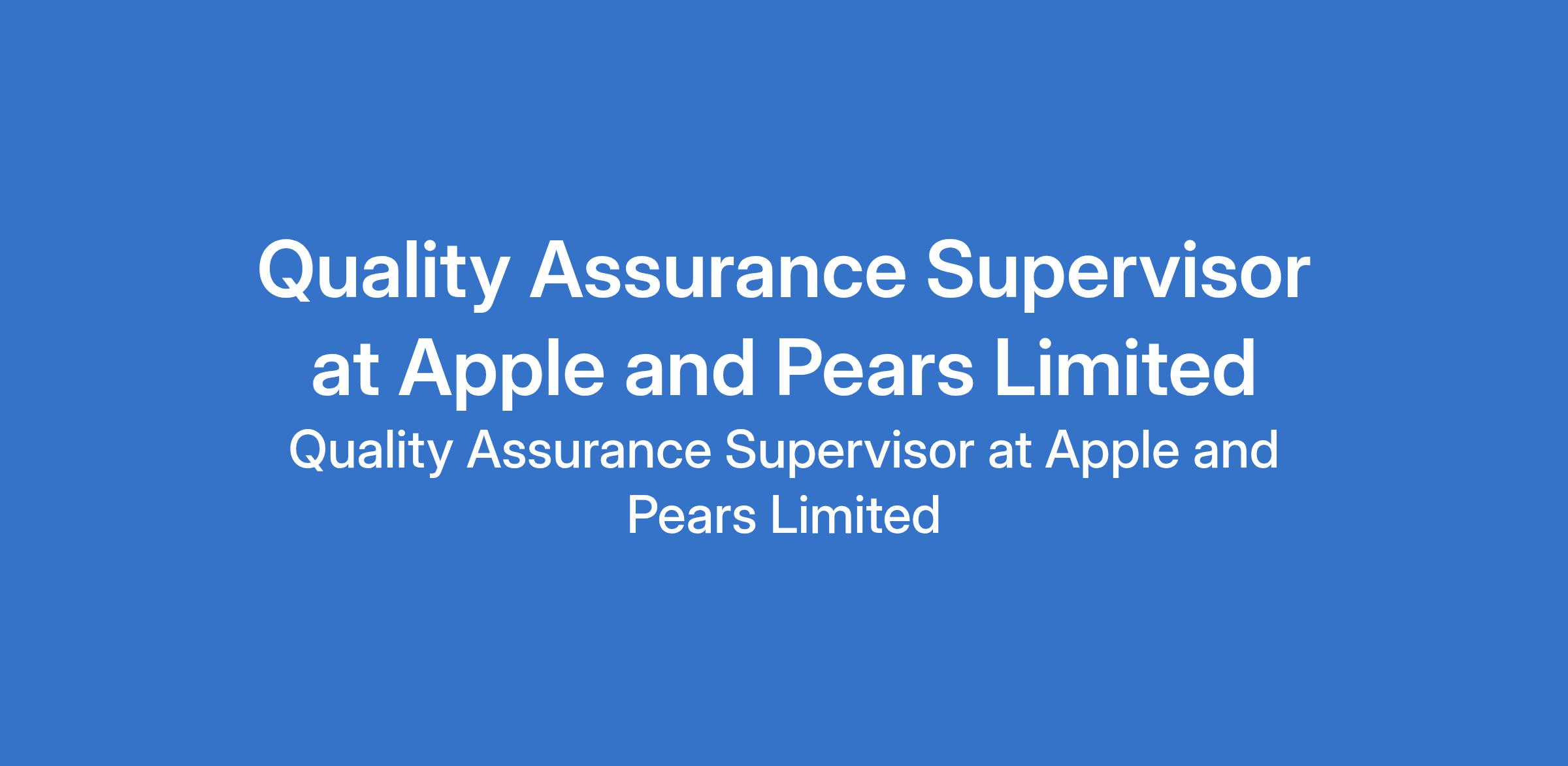 Apple and Pears Limited is recruiting to fill the position of: Quality Assurance Supervisor. The position is located in Sagamu, Ogun State. Salary: N180,000 monthly. Interested candidates should possess minimum of an OND / HND / BSc Degree in Food Science, Microbiology, Biochemistry, or a related discipline with previous experience in quality assurance or quality control within a food manufacturing environment (experience with fresh produce is an added advantage) and must reside in Sagamu, Ogun State, or nearby environs.