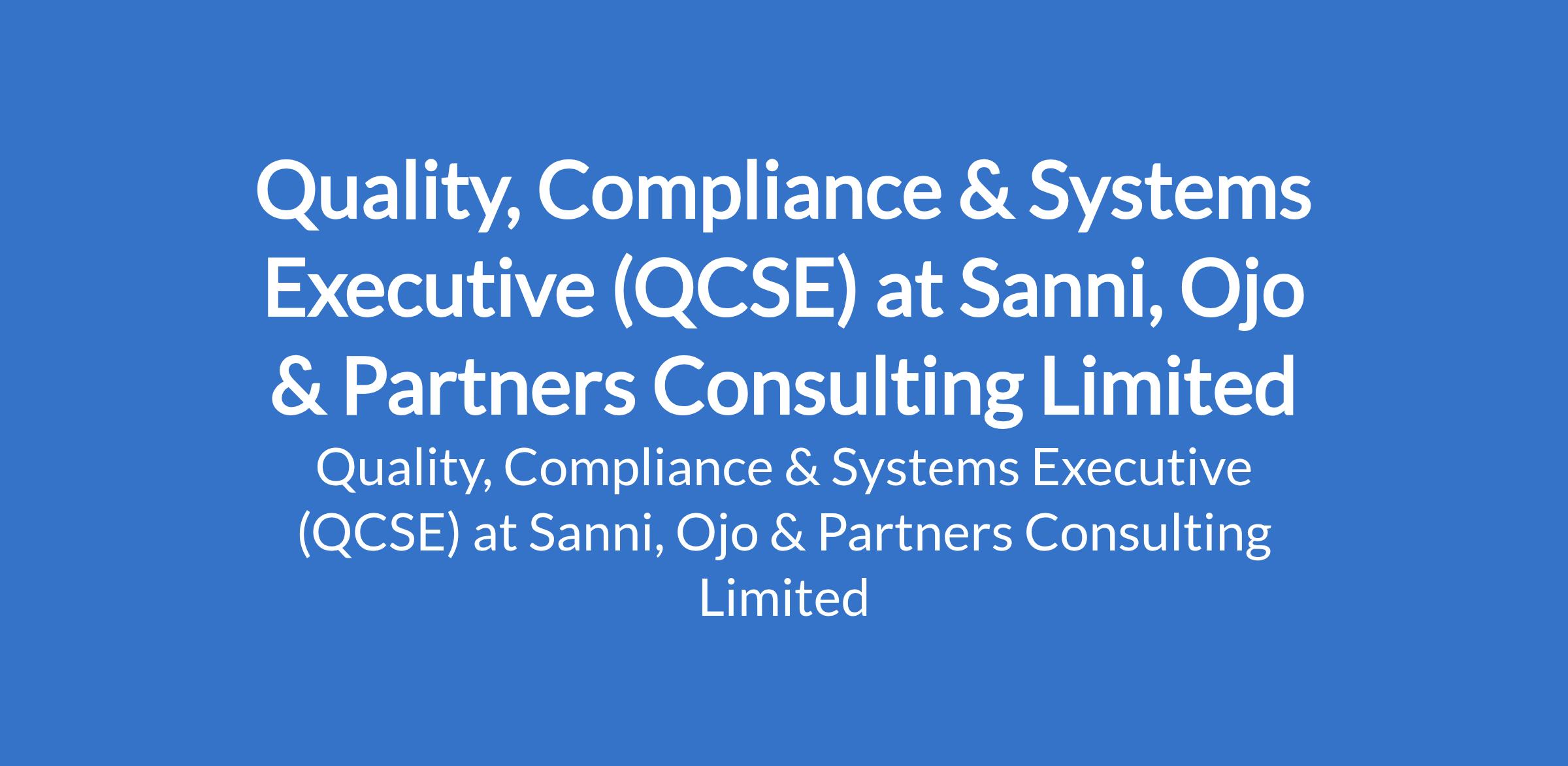 Sanni, Ojo & Partners Consulting Limited is recruiting to fill the position of: Quality, Compliance & Systems Executive (QCSE). The position is located in Shomolu, Lagos State. Salary: N250,000 - N320,000 / month. Interested candidates should possess relevant qualifications with 47 years of experience in Quality/Compliance/QMS roles.